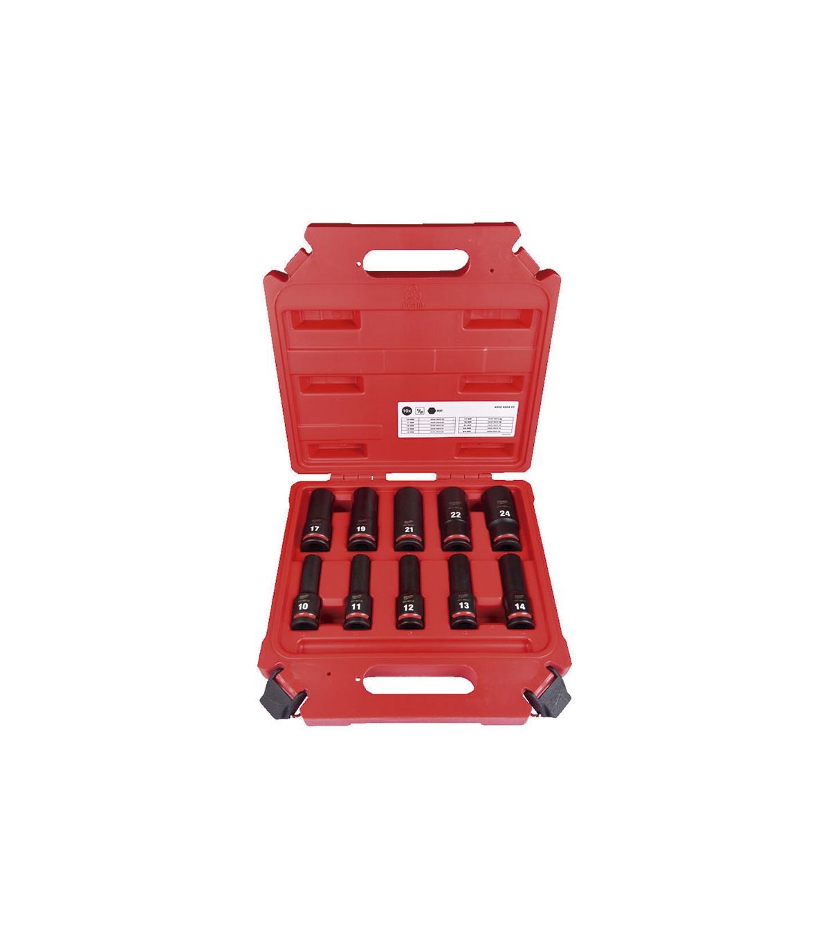 Estuche de 10 piezas vasos largos 1/2". Acero cromo-molibdeno.