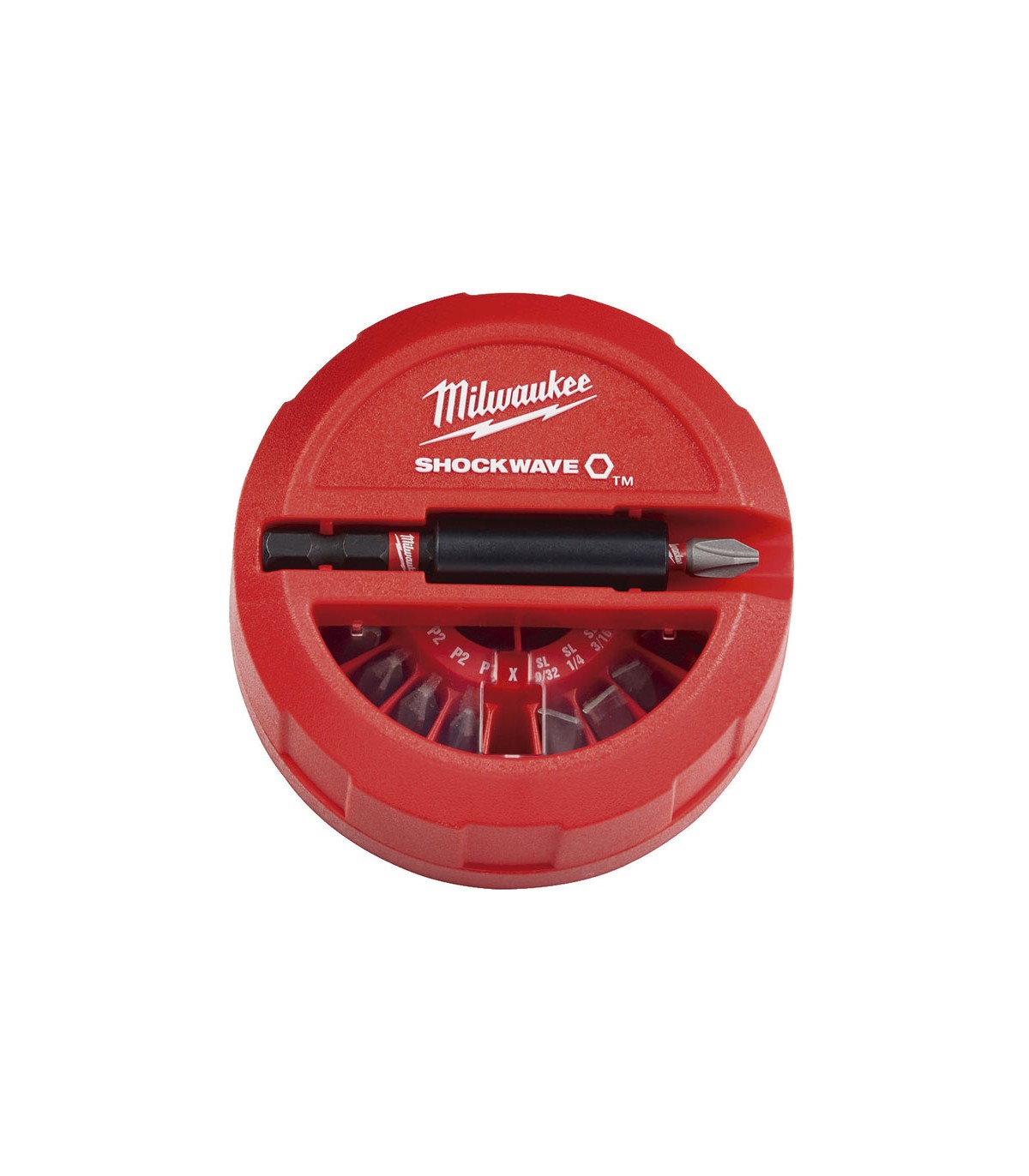 Estuche 15 accesorios 1/4". Puntas de atornillado y portapuntas magnético.