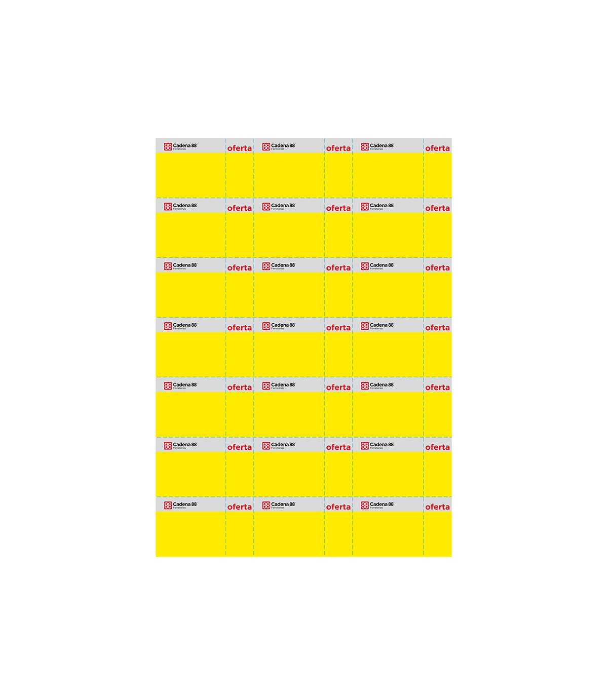 100 hojas Din A4. Hojas troquelada para portaprecios de 70x40 ó 50x40 mm. Puede imprimirlas automáticamente a través Programa Control integral-Módulo Cadena 88.