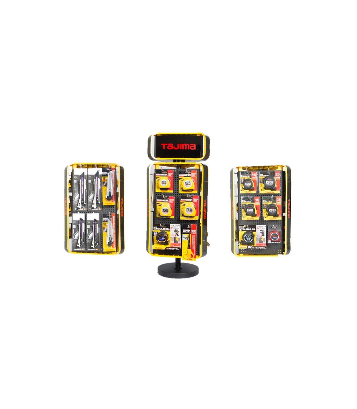 Expositor de sobremesa TAJIMA 1 módulo customizable de 3 caras. Con base redonda.