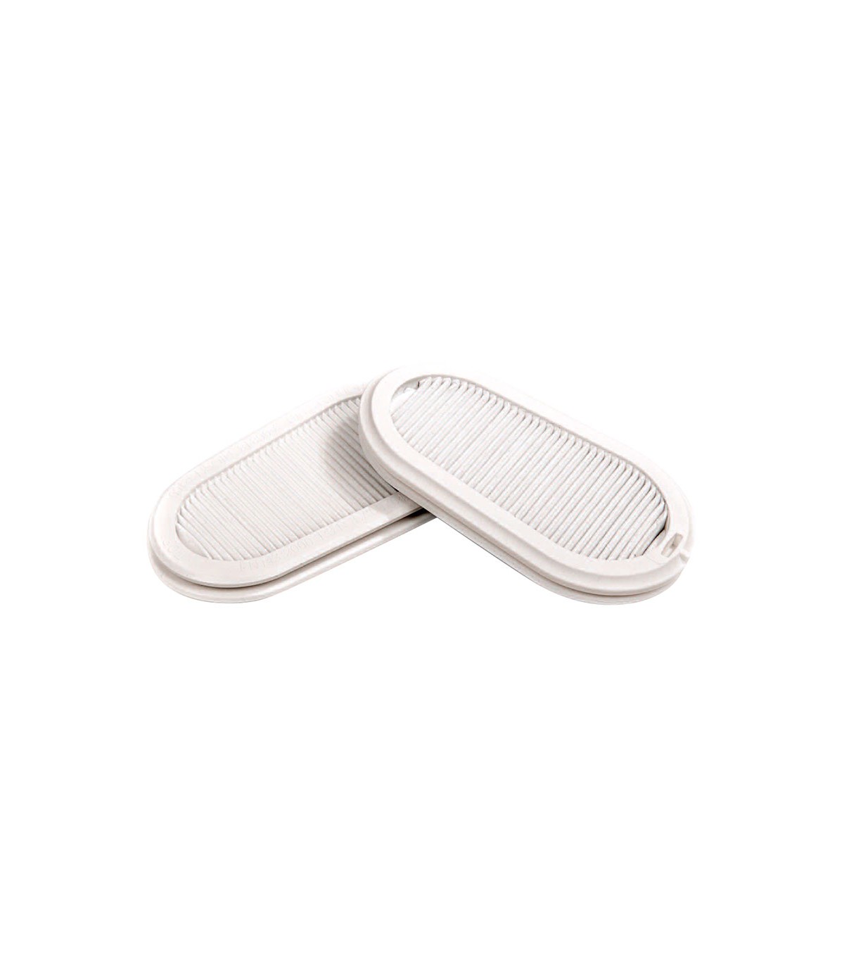 Fabricado TPE (elastómero termoplástico) azul, libre de látex, silicona y olores. Material hipoalergénico. Diafragma de inhalación/exhalación en silicona. Banda elástica en cabeza y cuello. Filtros intercambiables. Máscara: EN 140:1998. Filtros: BS EN143:2000/A1 P3 (RD).