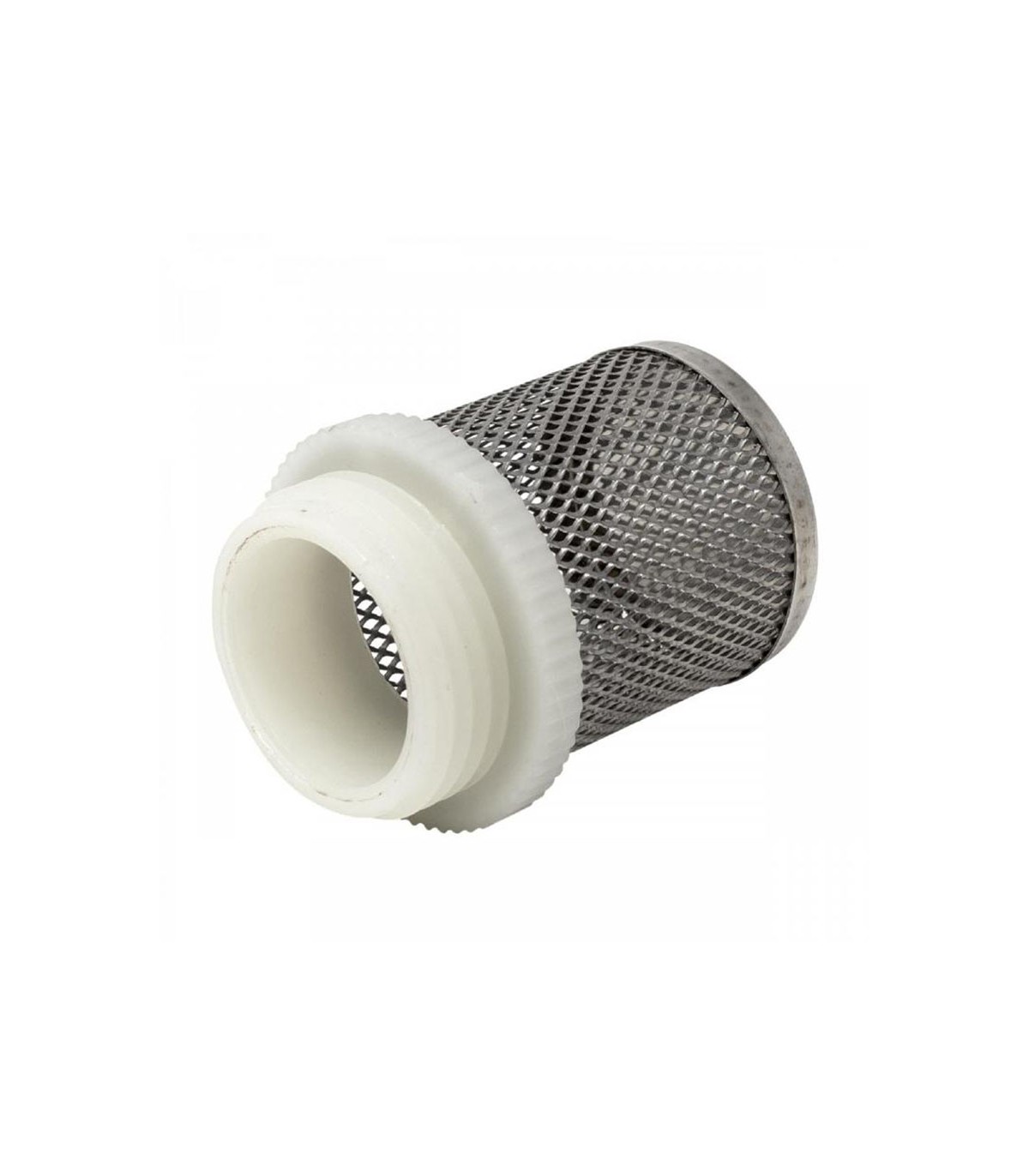 Filtro de válvula de retención con cuerpo de nilón y tapa de acero inox.