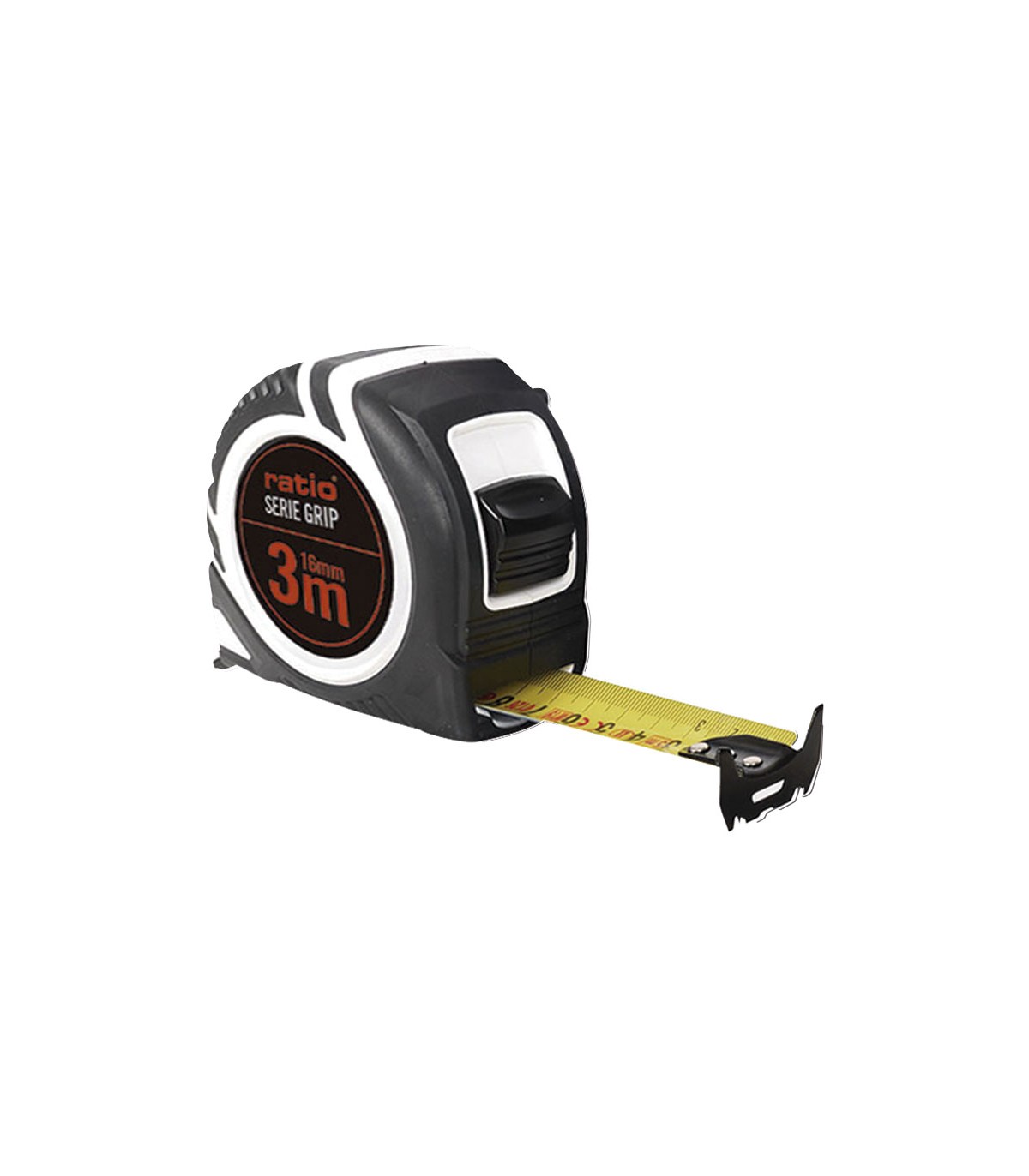 Carcasa ABS con recubrimiento antideslizante. Cinta numeración doble cara (amarilla/blanca) con revestimiento nilón antireflex. Gancho metálico doble reforzado y botón de bloqueo. Clip para cinturón y correa de mano. Homologado CE, clase de Precisión II.