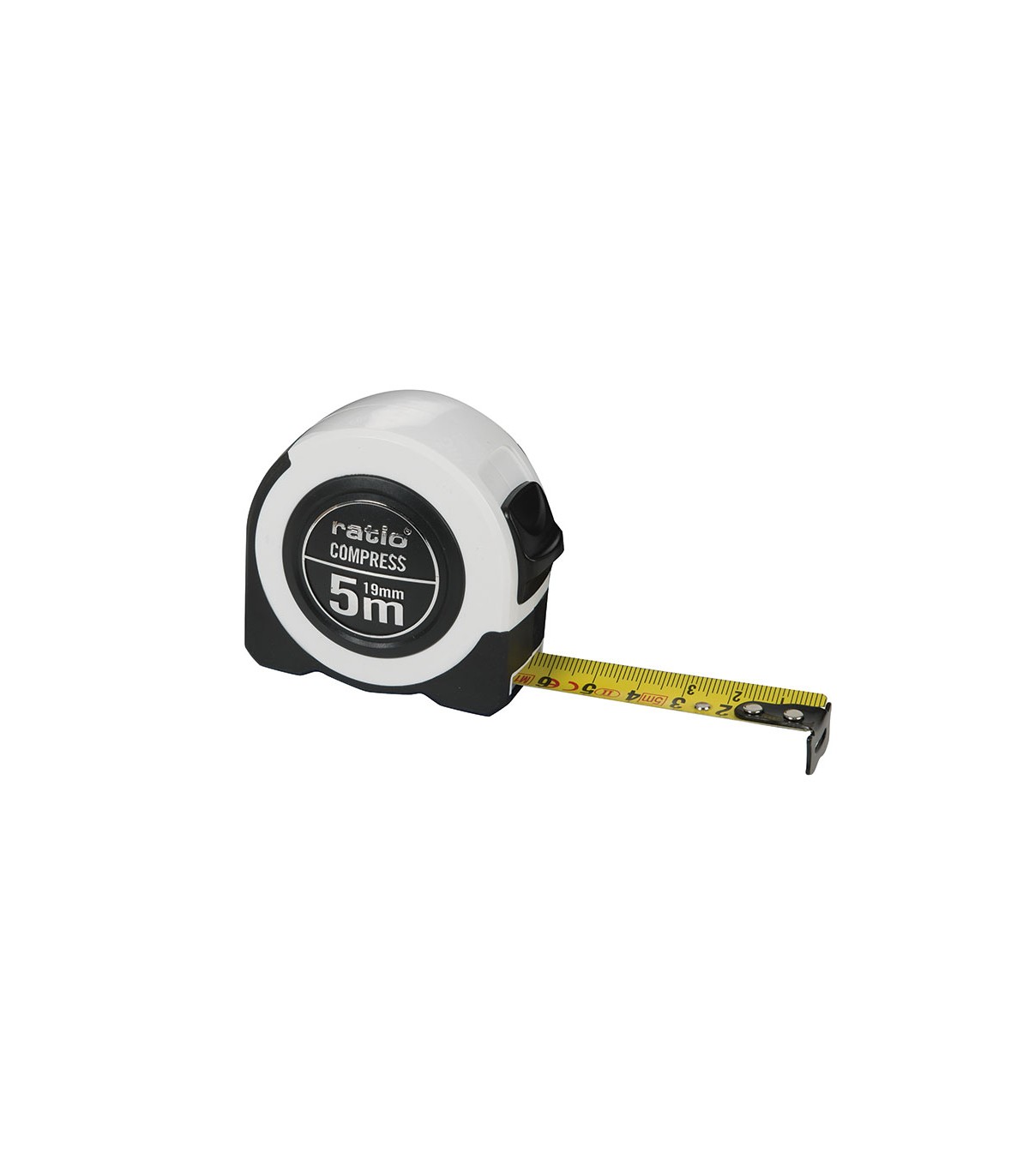 Carcasa ABS, con recubrimiento antideslizante. Cinta numeración doble cara (amarilla/blanca) con revestimiento nilón antireflex. Gancho reforzado. Clip para cinturón y botón de bloqueo. Homologado CE. Clase de Precisión II.