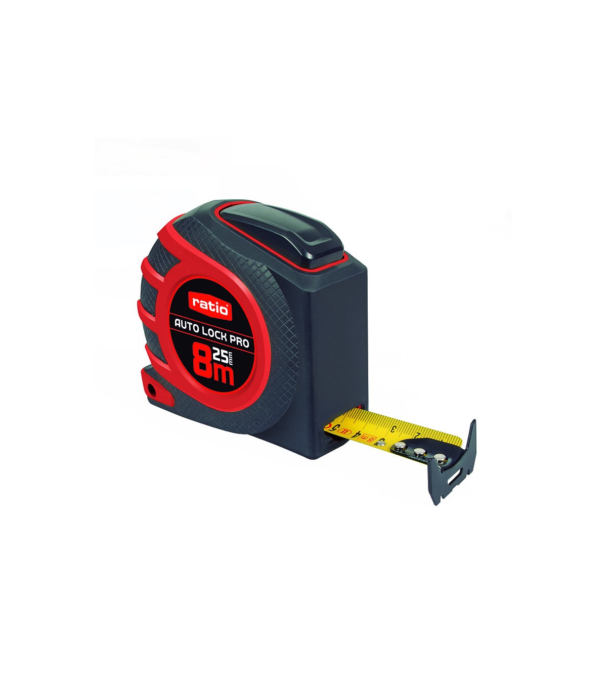 Carcasa ABS, con recubrimiento antideslizante y con sistema de bloqueo automático. Cinta numeración doble cara (amarilla/amarilla) con revestimiento nilón antireflex. Gancho reforzado. Clip para cinturón y botón de bloqueo. Homologado CE. Clase de Precisión II.