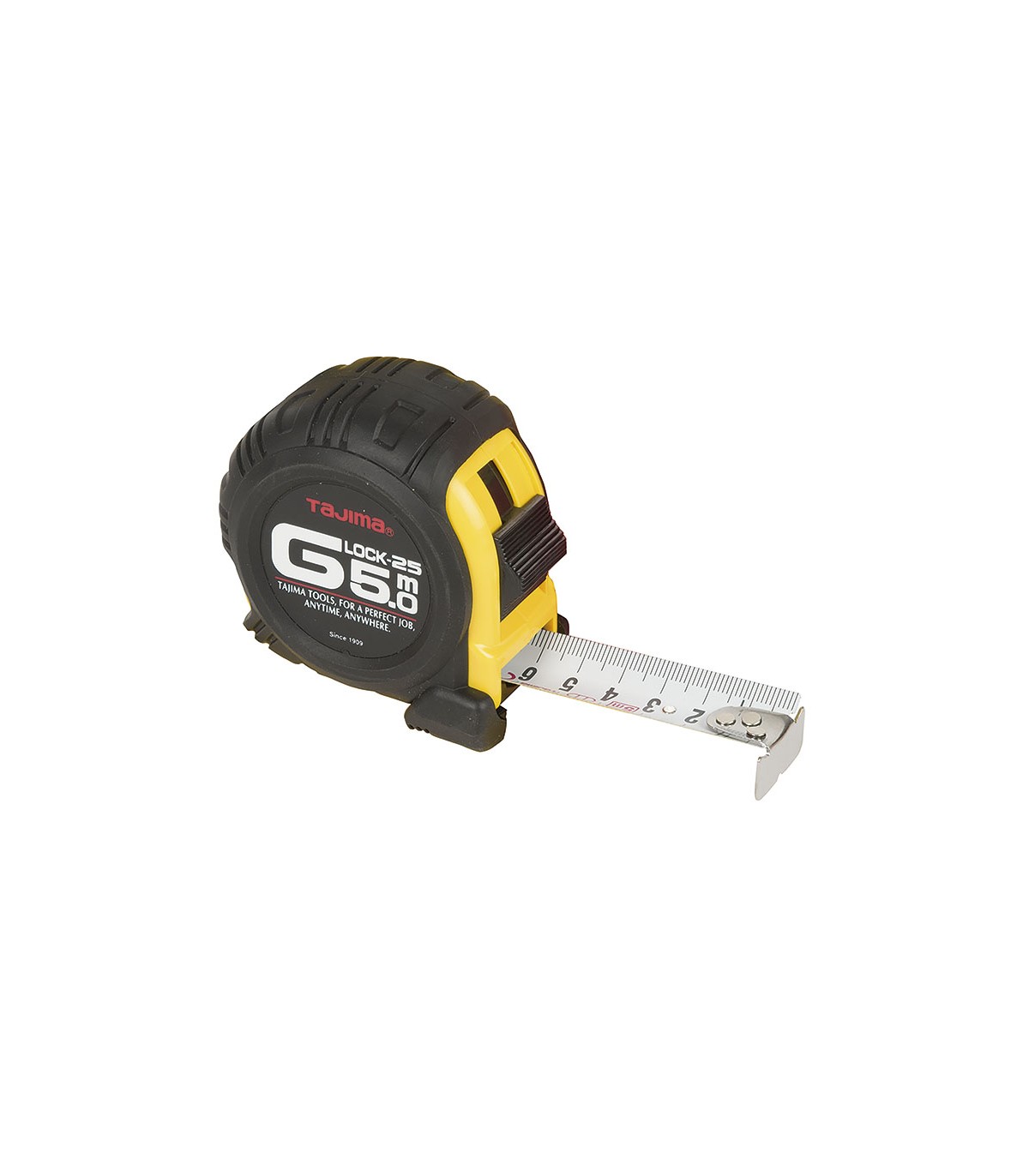 Caja plástico ABS. Cinta acero esmaltado amarillo. Recubrimiento goma antideslizante. Clip sujeción y botón de bloqueo. . Homologado CE. Clase de precisión II.