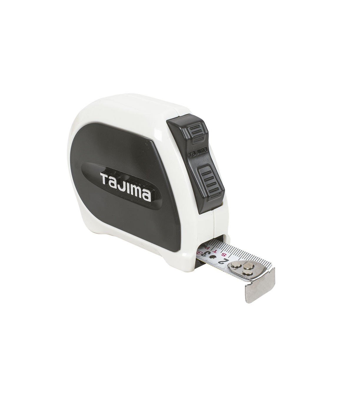 Carcasa ABS. Cinta reforzada de acero esmaltado con recubrimiento antireflex y numeración doble cara (blanca/amarilla). Con sistema de autobloqueo, botón de bloqueo y clip de sujeción. Homologado CE, clase de Precisión II.