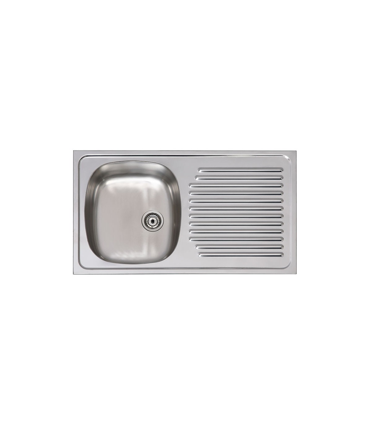 Para encastar. Acero inox 0,6 mm. Sin taladro para grifería. 1 seno+escurridera.