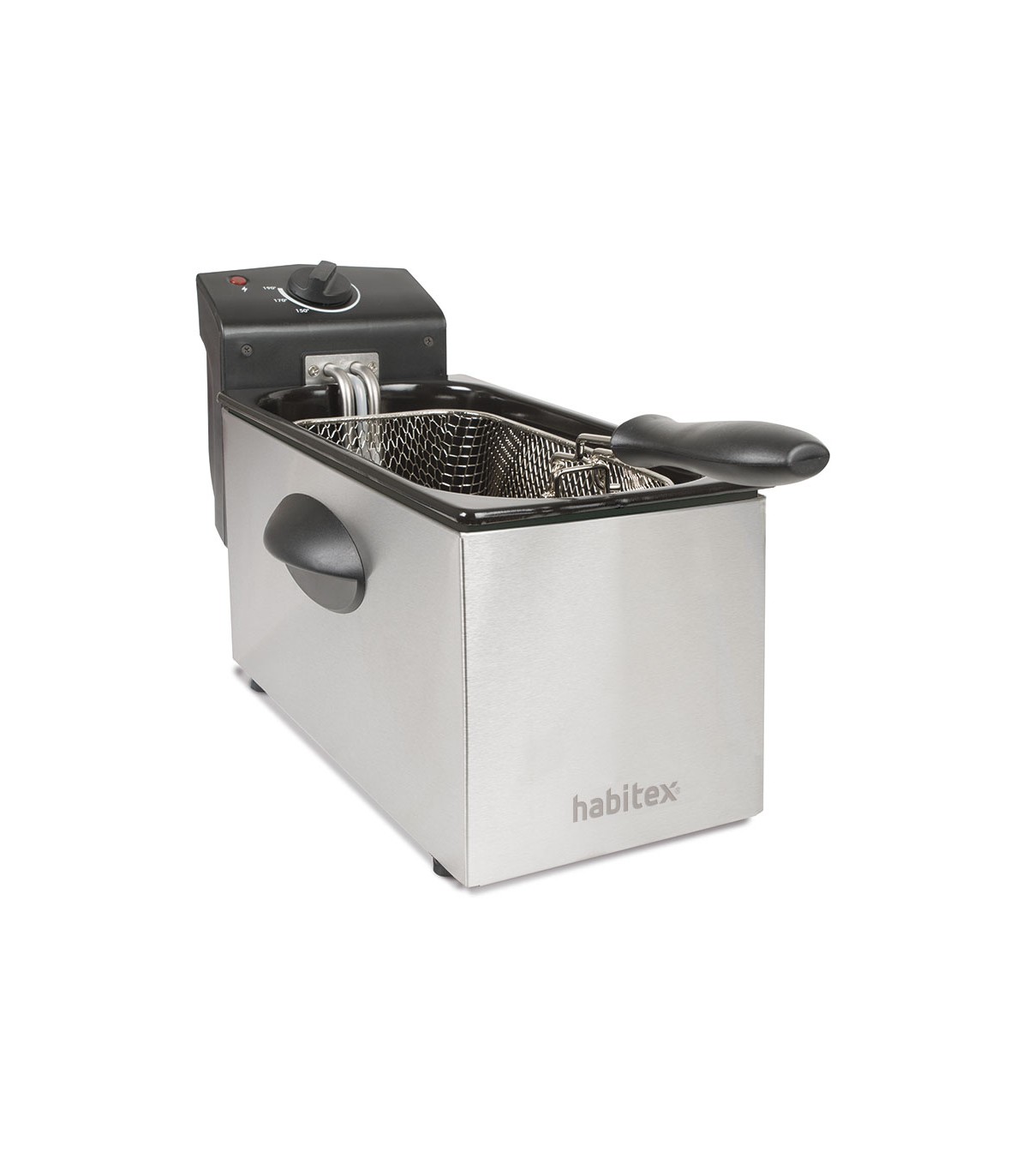 Cubeta esmaltada 3 litros. Temperatura regulable 190ºC. Fácil de desmontar para su limpieza. Mango plegable y extraíble. Apto para lavavajillas. Zona fría. Compartimento para cable.