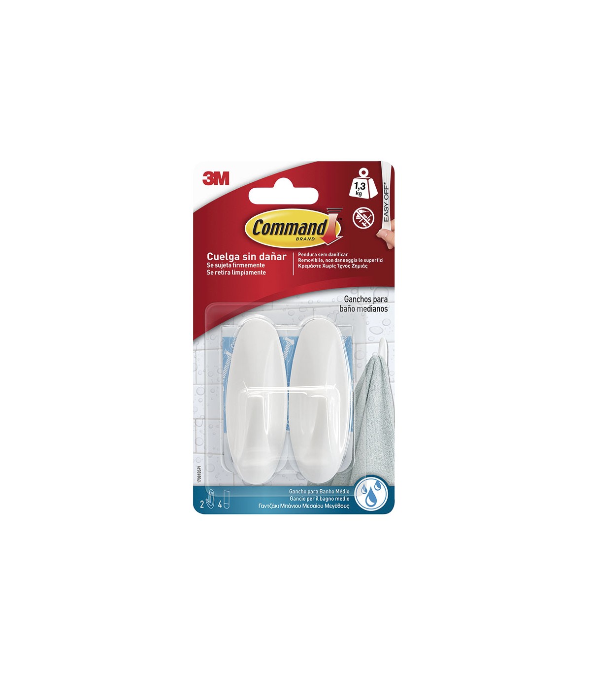 Cintas resistentes al agua. Sin necesidad de hacer agujeros. Se adhiere a multitud de superficies; paredes pintadas. madera, baldosas.... Se retiran limpiamente, sin marcas, sin residuos pegajosos, ni manchas. Reutiliza los ganchos usando las tiras de repuesto. No apto para baños.
