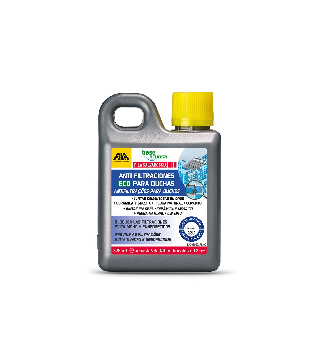 Previene filtraciones, moho duchas. Protege juntas, materiales contra agua, eflorescencias. Base acuosa, sin disolventes, ni COV. Certificación Indoor Air Comfort Gold. Secado rápido.