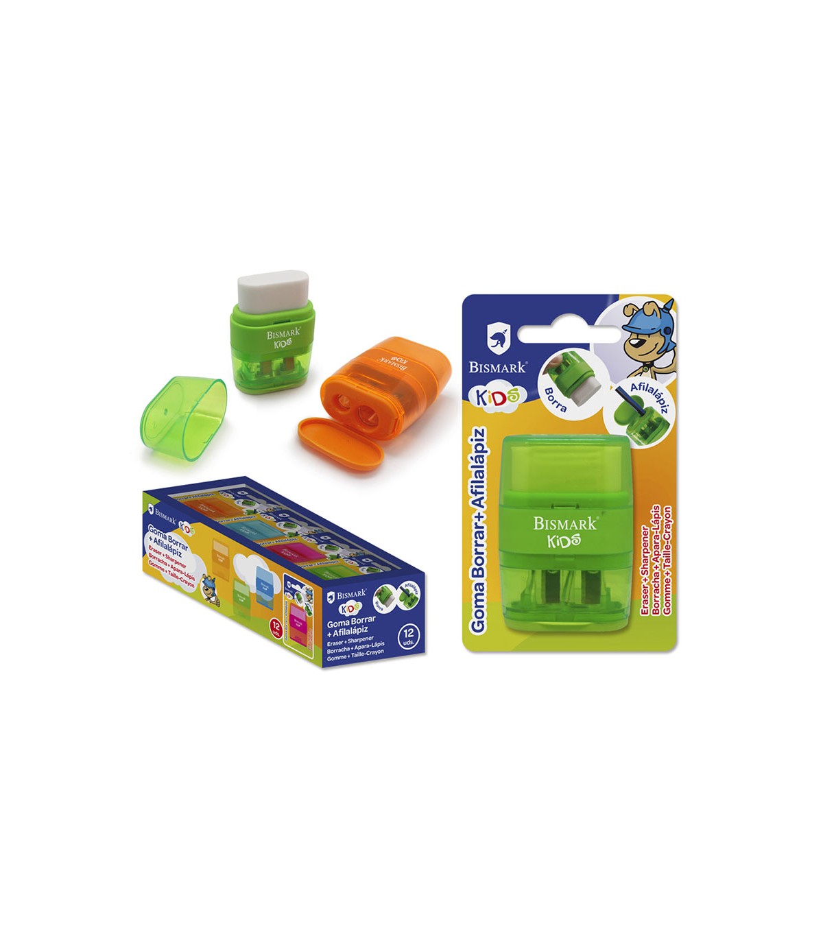 Pack goma borrar + sacapuntas BISMARK doble neon box