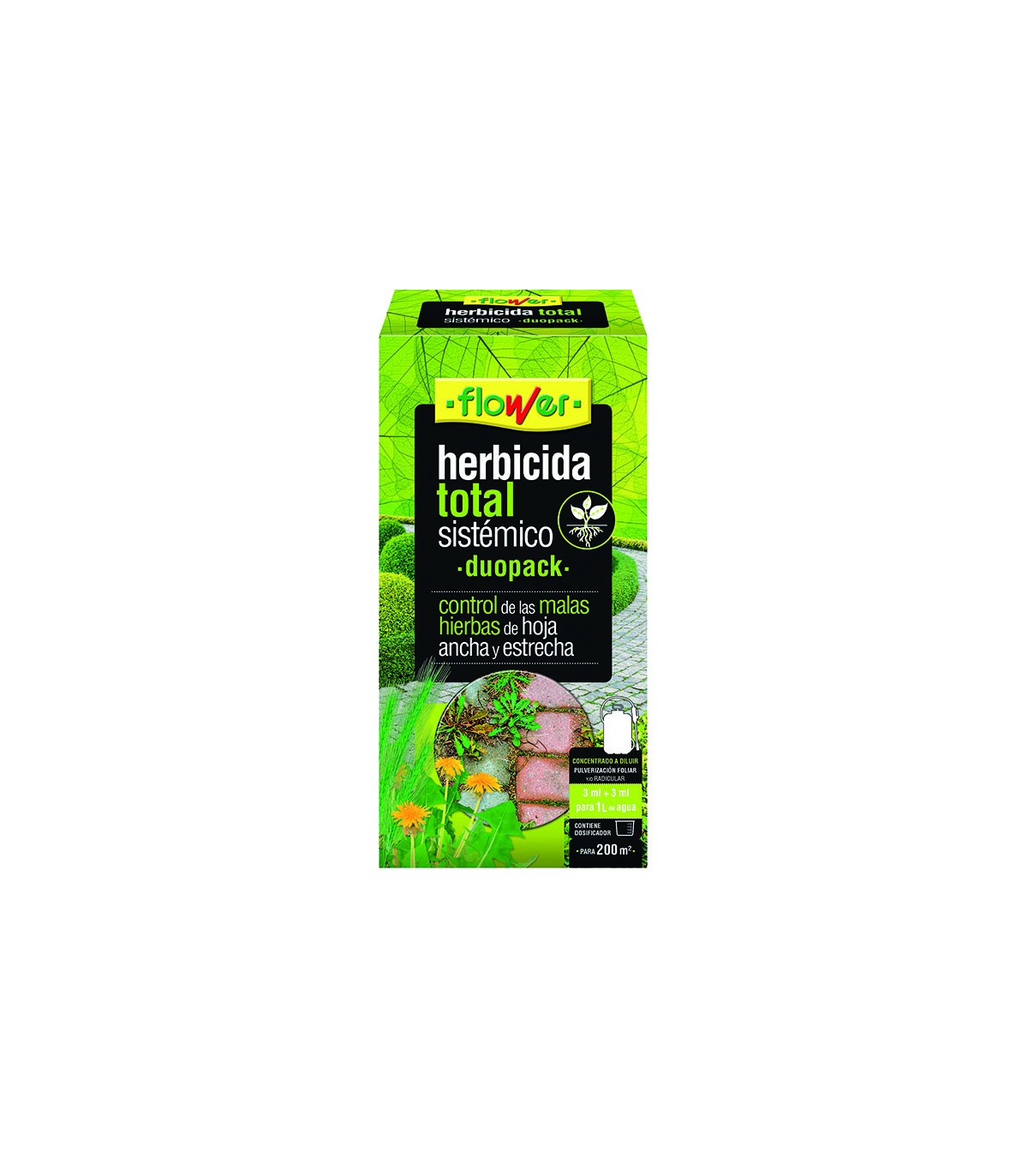 Controla las malas hierbas de hoja ancha y estrecha. Concentrado para diluir. Contiene dosificador.