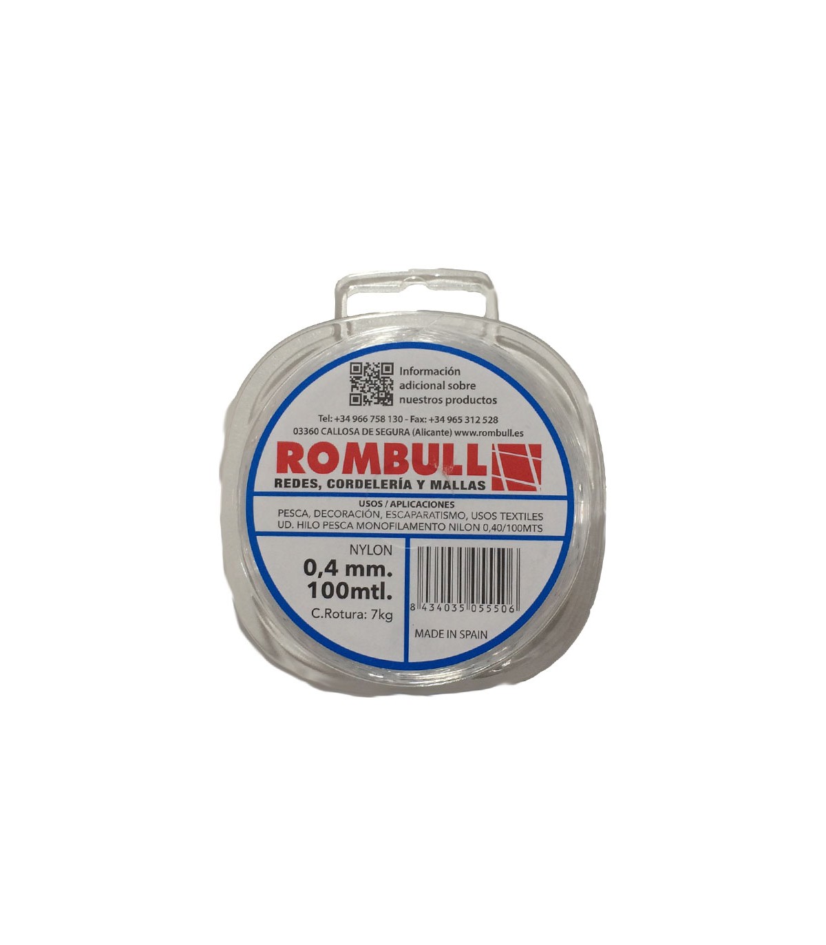 Monofilamento nilón de alta resistencia. Apliaciones: Pesca, decoración, escaparatismo, usos textiles.