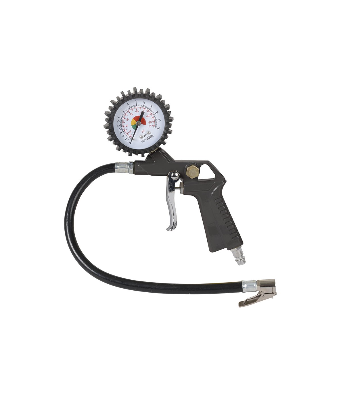 Manómetro doble escala PSI/Bar. Enchufe rápido 1/4". Extremo de goma flexible.