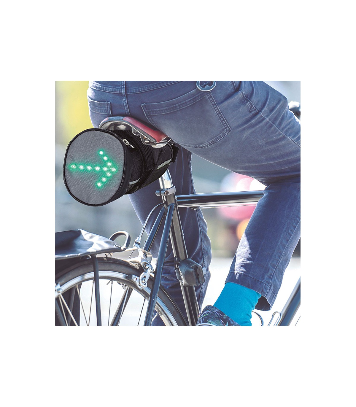 Funciona sin cables con batería recargable (cable de carga incluido). No necesita herramientas para su instalación. Con mando a distancia (pilas incluidas) para colocar en el manillar. La bolsa permite guardar los efectos personales.