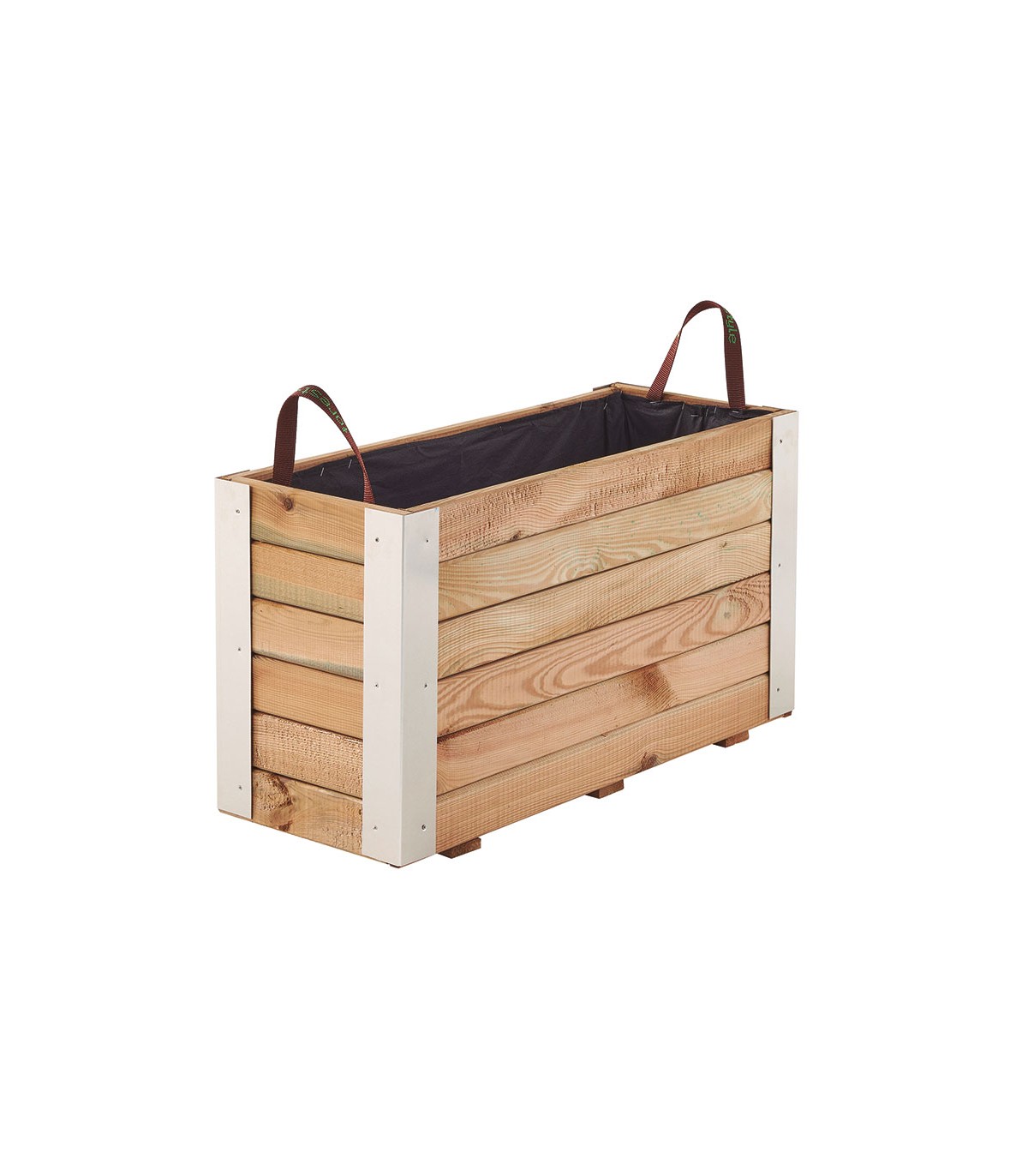 Fabricada en Pino silvestre procedente de bosques eco-responsables con sello FSC. Esquinas reforzadas con Aluminio. Incluye malla geotextil que evitará el crecimiento de malezas.