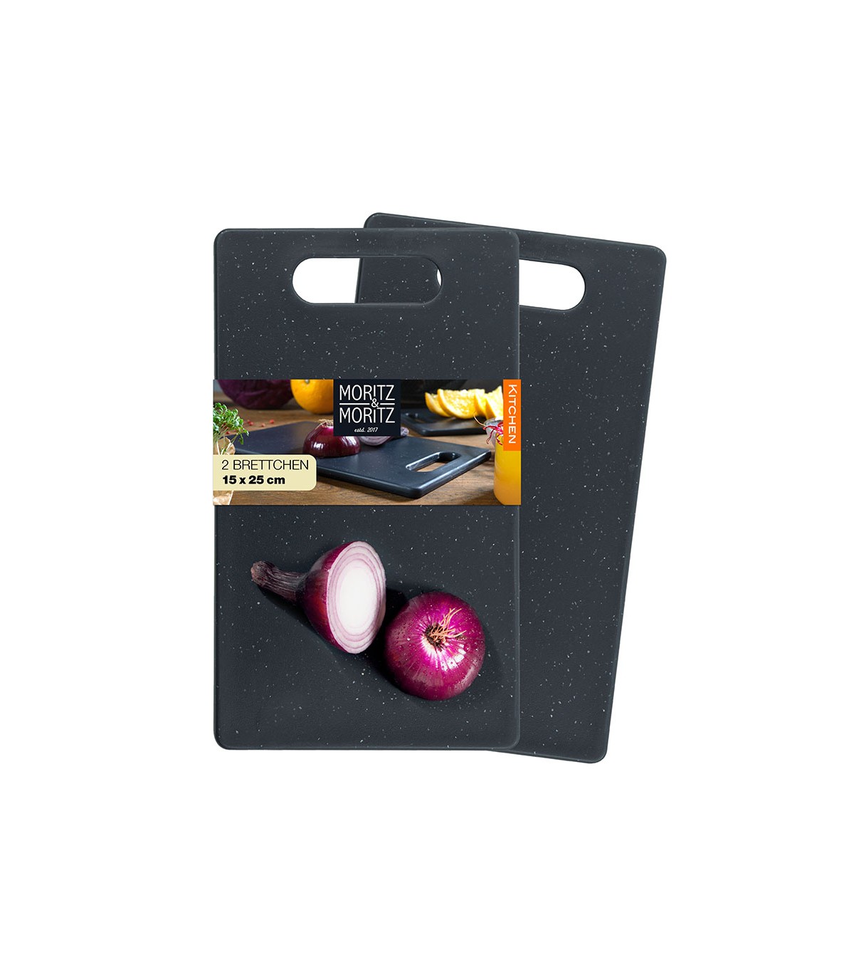 Juego 2 unidades. Plástico de alta calidad, resistente y sin BPA, con aspecto de granito. Apta para lavavajillas. Tacos antideslizantes para mayor seguridad de corte y asa de agarre.