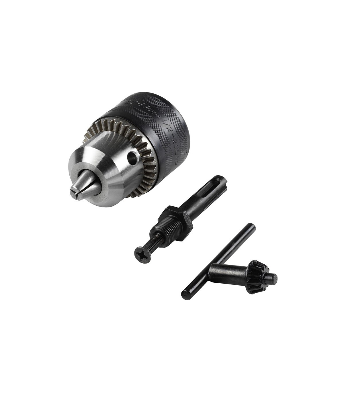 Solo uso con giro, no válido para percusión. 1 portabrocas con rosca interior de 13 (1/2") x 20 mm, ancho de sujeción 1,5 - 13 mm. 1 llave para portabrocas S2A. 1 adaptador de portabrocas, SDS-plus con rosca de 13 (1/2") x 20 mm.