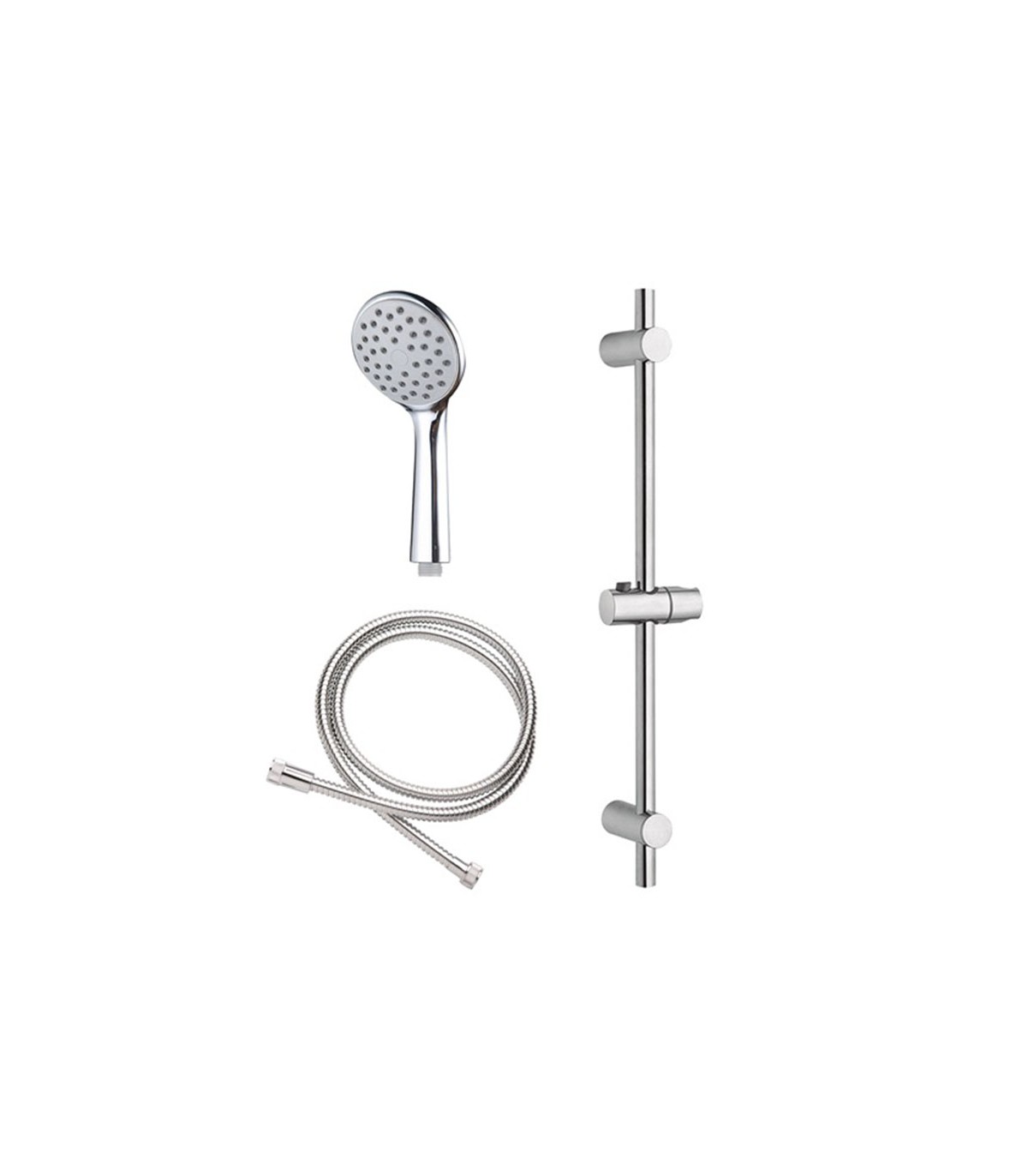 Barra ducha universal cromada, flexo inox pulido y mango ducha antical de 1 posición cromado.
