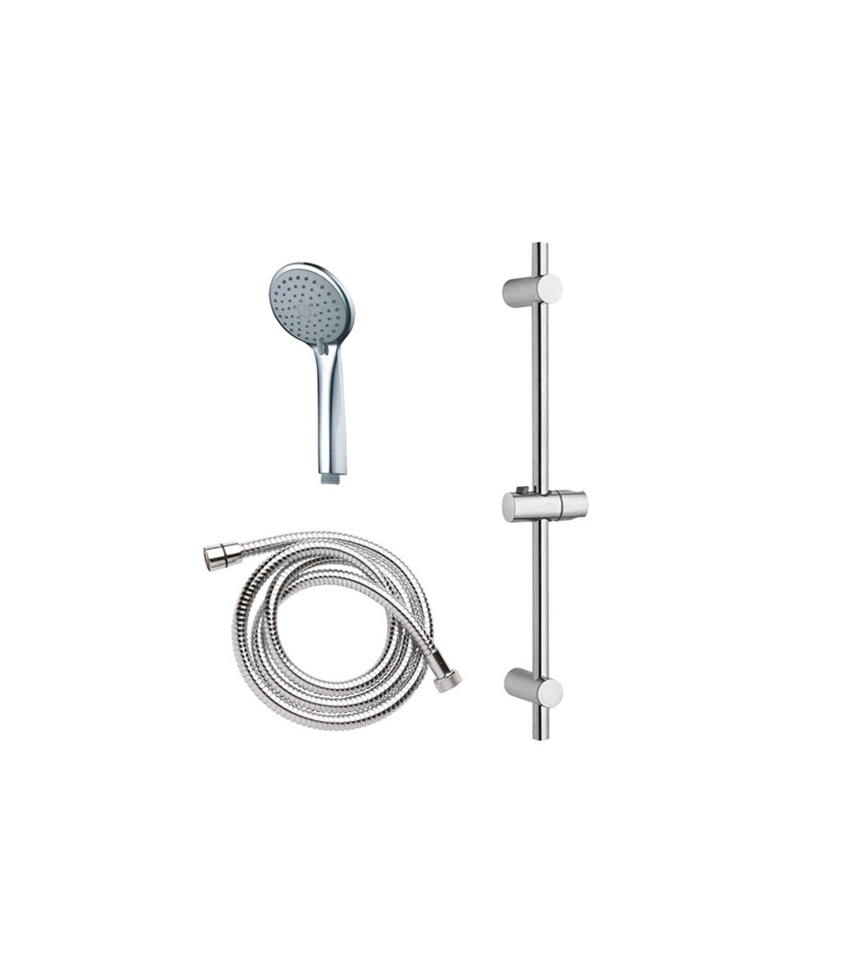 Barra ducha universal cromada, flexo cromado doble engatillado y mango ducha antical de 3 posiciones cromado.