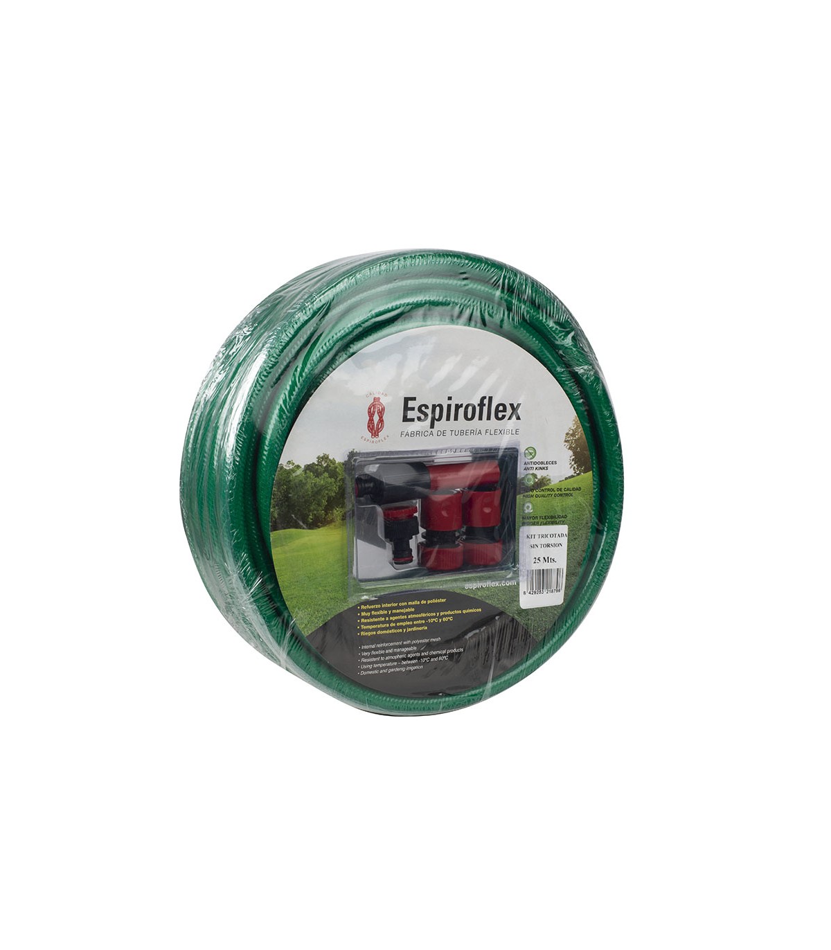 No se retuerce ni se estrangula. Incluye racor hembra, 2 conectores y lanza de riego.