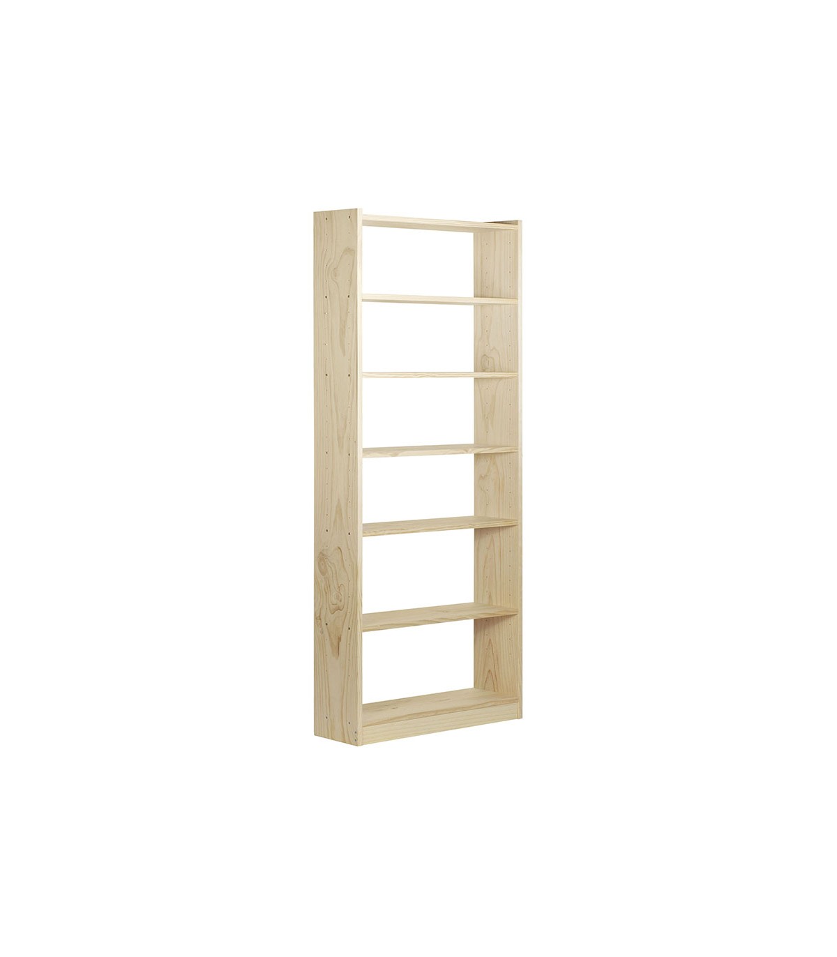 Estantería pino macizo 20 mm grosor. Baldas alturas regulables. Peso máximo 100 kg. Fijación pared incluída. Madera certificada. Certificado ecológico.