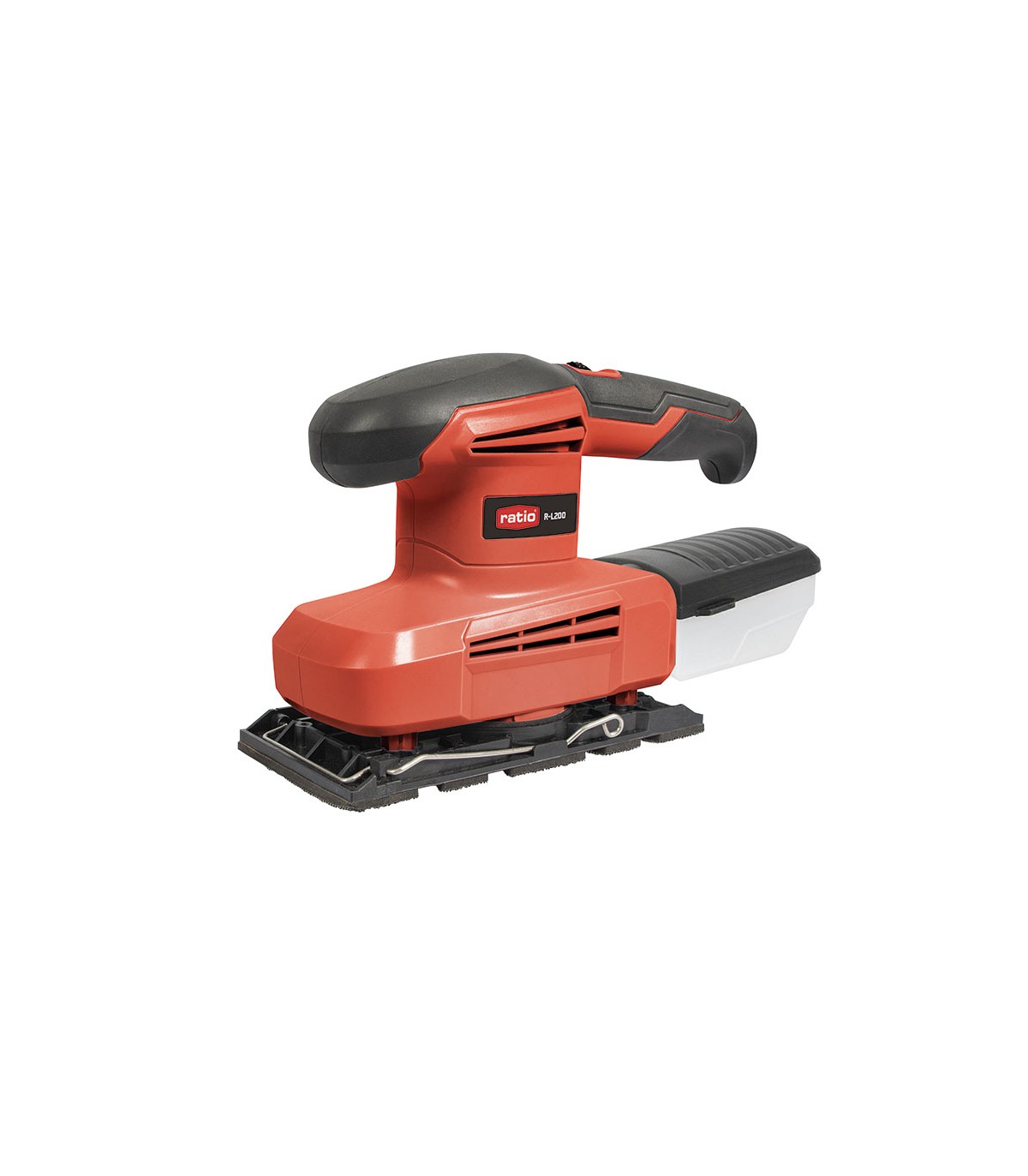 Empuñadura bimaterial. Compacta. Velocidad variable. Anclaje de lijas con pinzas. Sistema de aspiración ciclónica.
