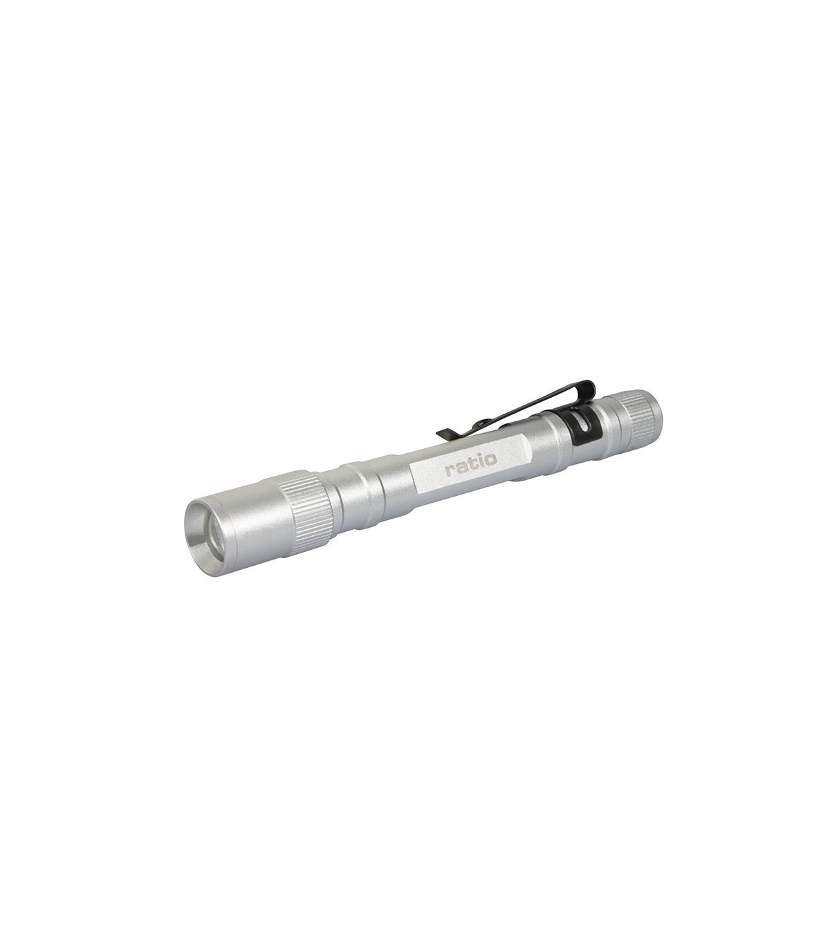 Carcasa aluminio. Zoom. 2 horas servicio. Con clip. IPX4. Funciona con 2 pilas AAA (no incluidas).