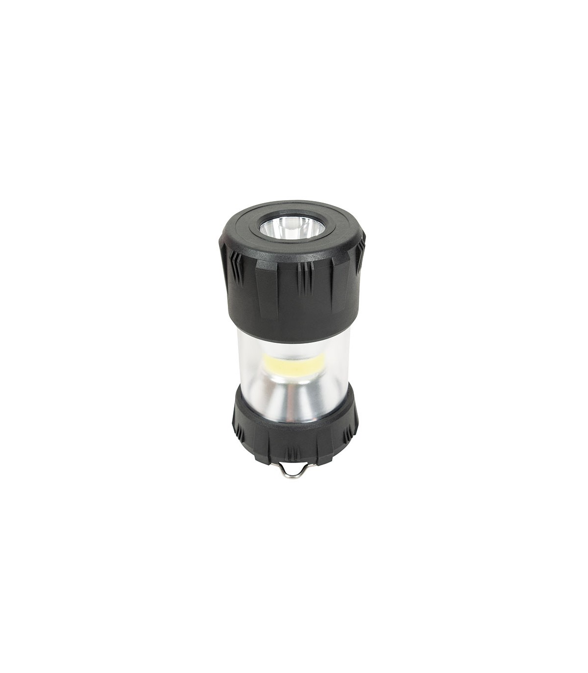 3en1 linterna, lámpara para camping y luz emergencia. 1 Led 5 W de anillo tipo COB + 1 Led 3 W para linterna. Alimentación: 1 batería recargable 2000 mah con cable USB "C" 50 cm. Tiempo recarga 3,5 h. IPX6.