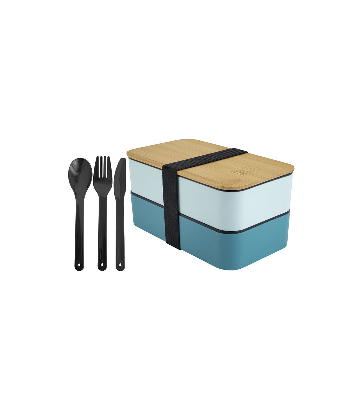 Tapa bambú y cubiertos. Compartimentos apilables.