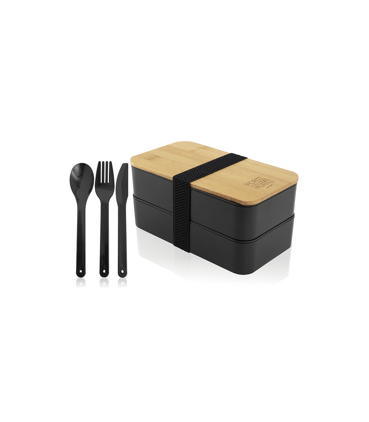 Tapa bambú y cubiertos. Compartimentos apilables.