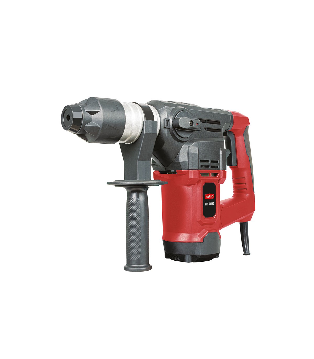 Anclaje SDS-Plus. Tres funciones: taladro, martillo y cincel. Empuñadura bimaterial. Maletín de transporte con empuñadura auxiliar, tope profundidad, 3 brocas SDS-Plus, 1 puntero, 1 cincel SDS-Plus, bote de grasa, 1 juego escobillas..