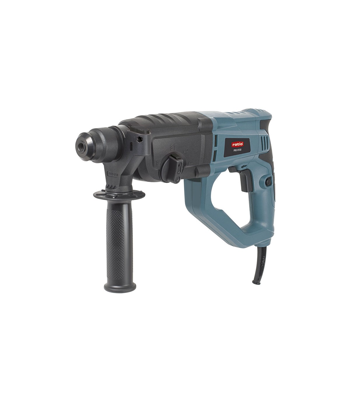 Gran potencia y fuerza de impacto. Anclaje SDS-PLUS. Control electrónico de velocidad. 4 funciones: taladrado, taladrado con percursión, cincelado y atornillador. Empuñadura bimaterial. Incluye: mango auxiliar, tope profundidad, portabrocas adicional con adaptador, 2 cinceles y 1 broca. Maletín de transporte.