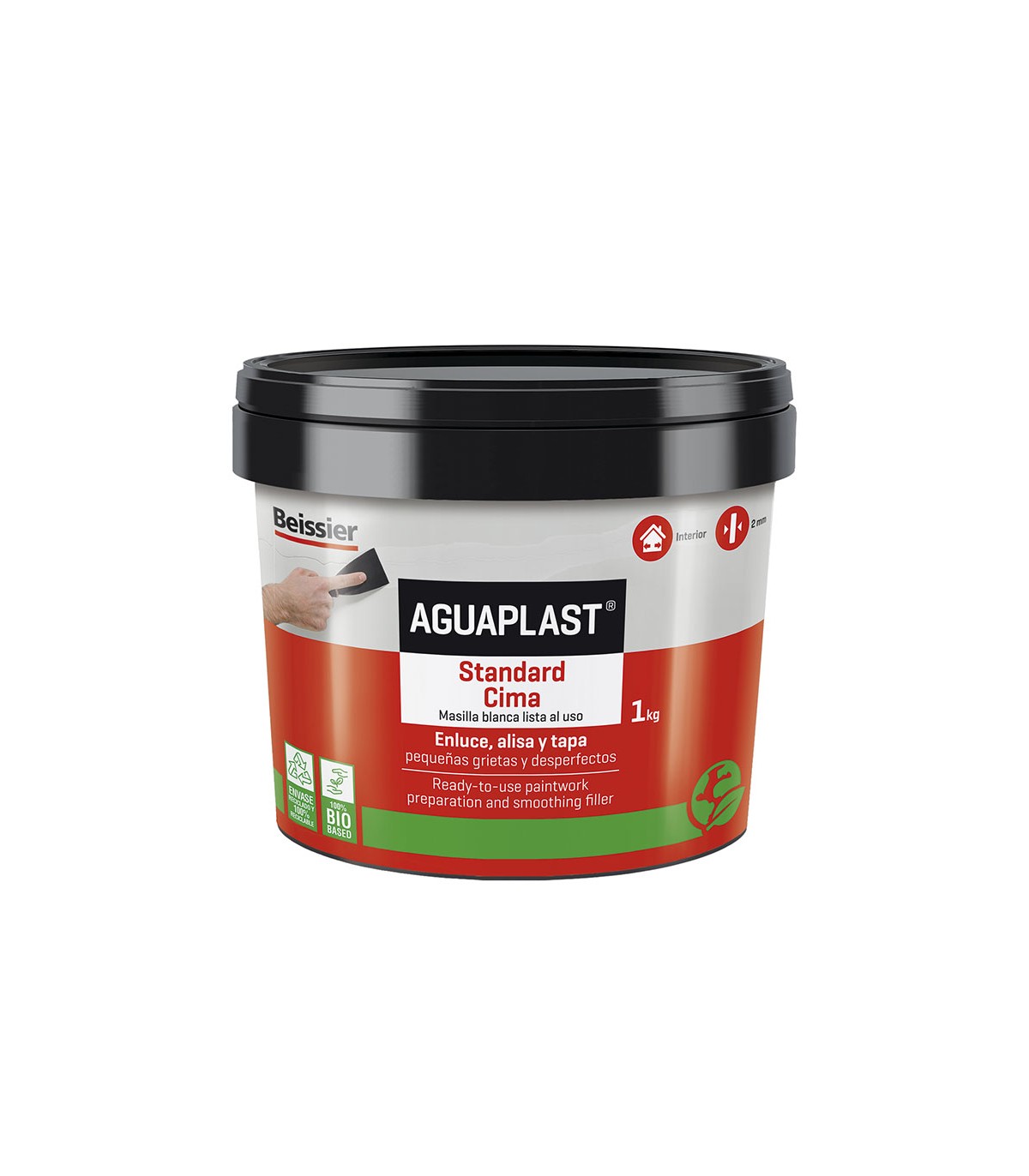 Pasta preparada para interior. Nivelador y tapagrietas. Acabado muy liso y duro. Usos: alisar y teneder superficies texturadas, parchear defectos superficiales sobre cemento, piedra, yeso o madera.