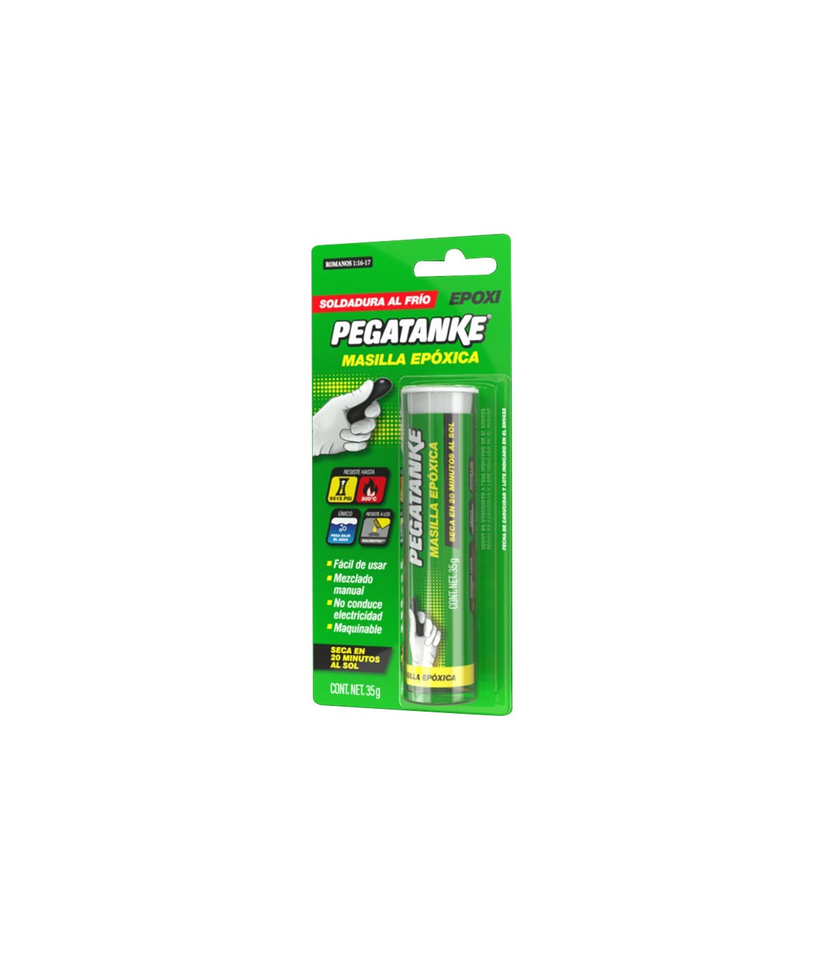 Soporta hasta 9,915 PSI de tensión y 300ºC de temperatura. Fácil de usar y aplicar (pre-mezclado). Resiste los solventes. Aplicable y cura bajo agua. Se puede taladrar, lijar, pintas y maquinar. Reparaciones y reconstrucción de todo tipo. Para metal, plástico, cerámica, fibra de vidrio. 35 gr.