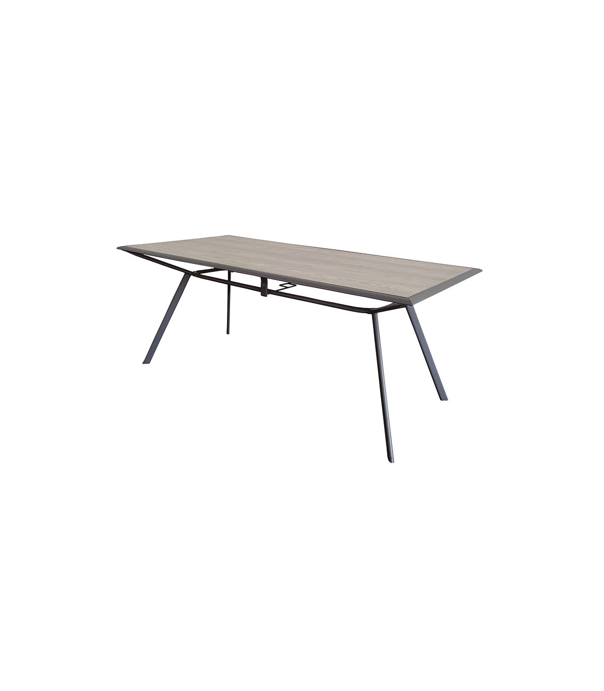 Estructura de acero color gris antracita. Mesa con superficie de cristal templado. Sillones con cojines de poliester.