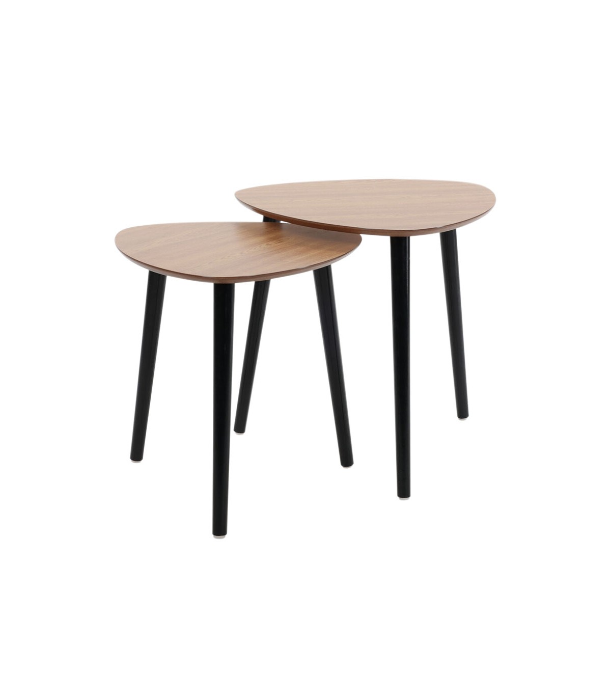 Sobre color madera natural. Tablero de borde inclinado. Patas negras con topes antideslizantes. Set 2 unidades.
