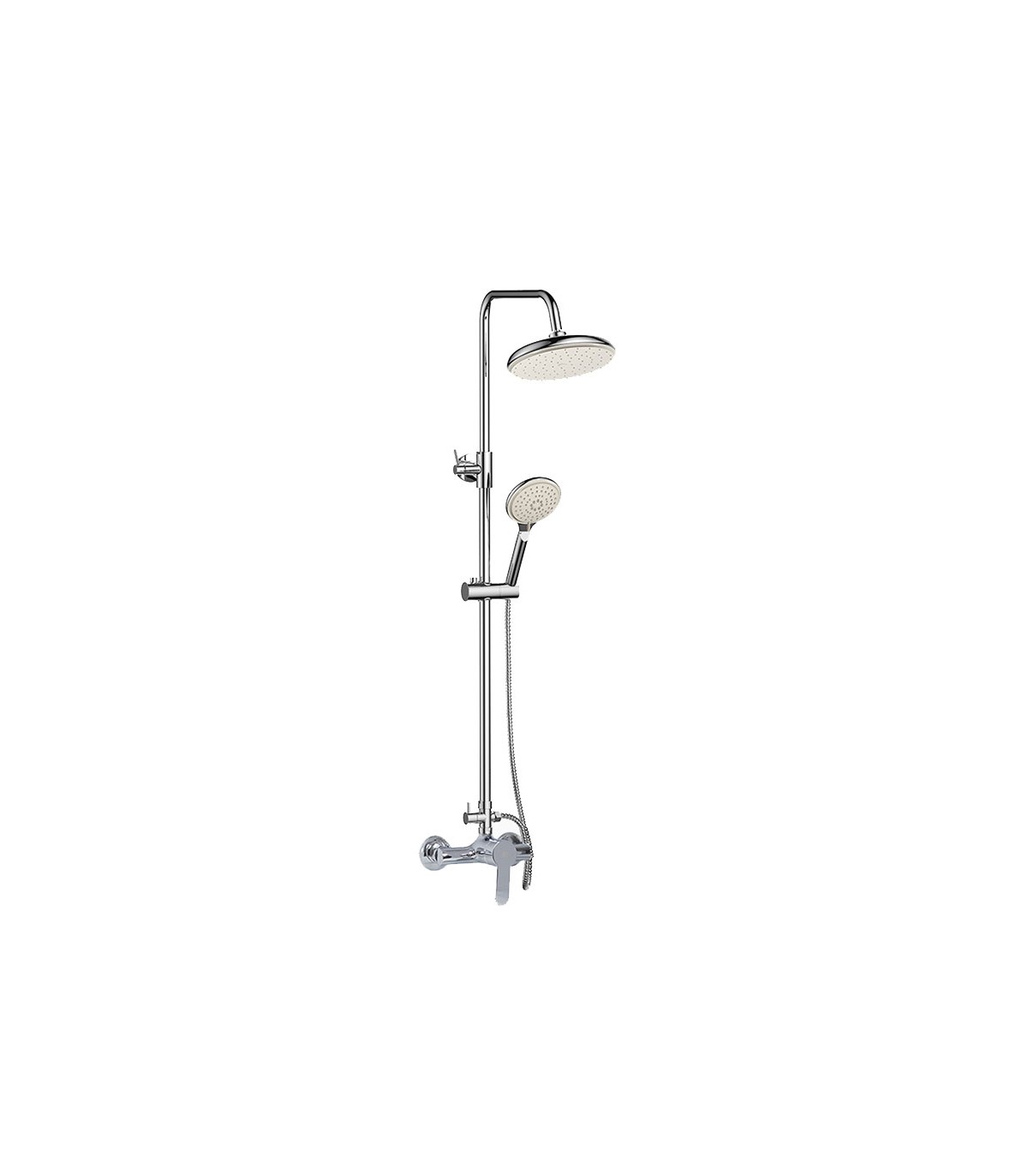 Acabado cromado. 2 salidas, rociador y mango ducha. Mezclador monomando. Sistema autolimpieza.