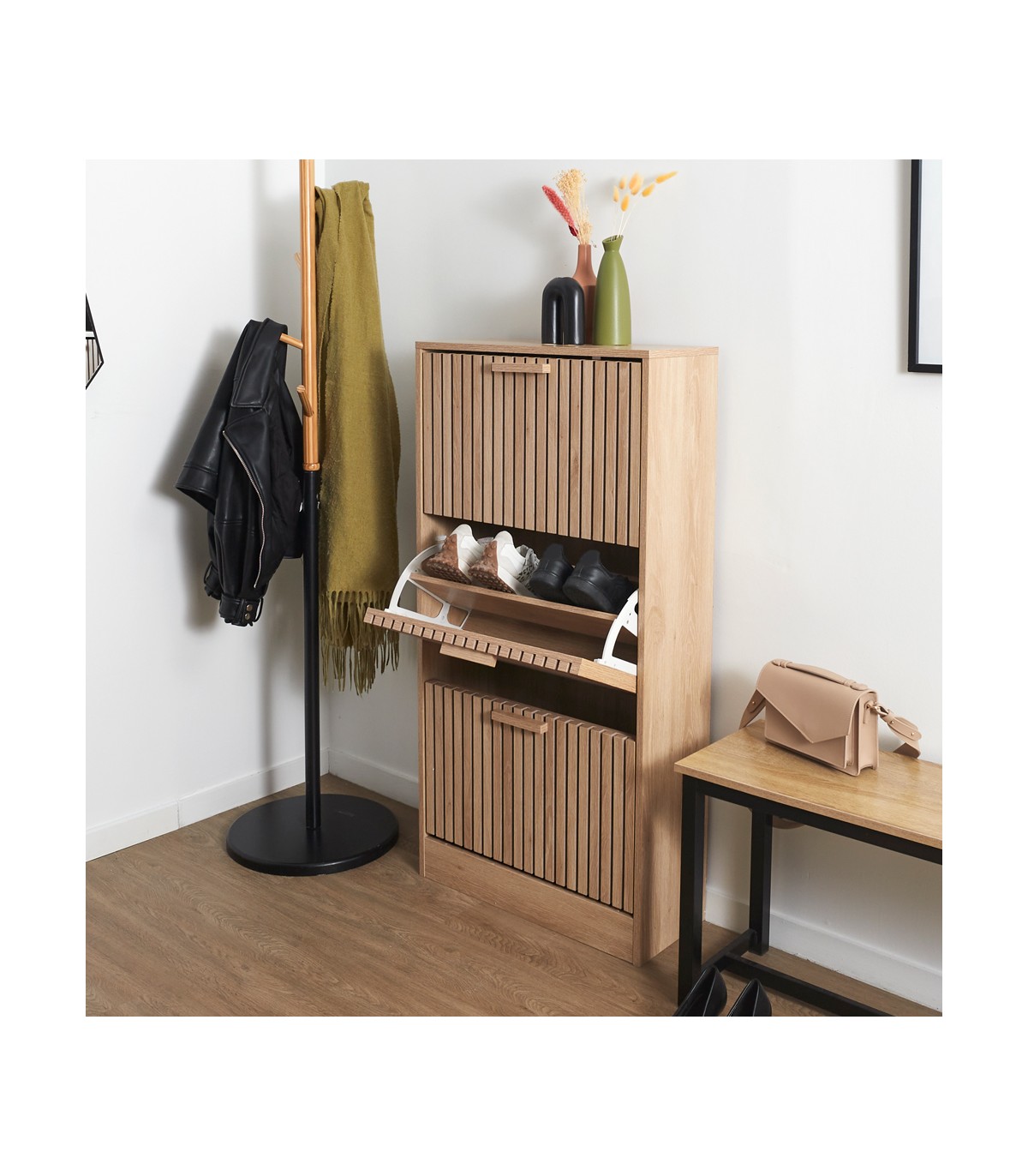 Madera MDF. Acabado natural. Se adapta a cualquier tipo de decoración.