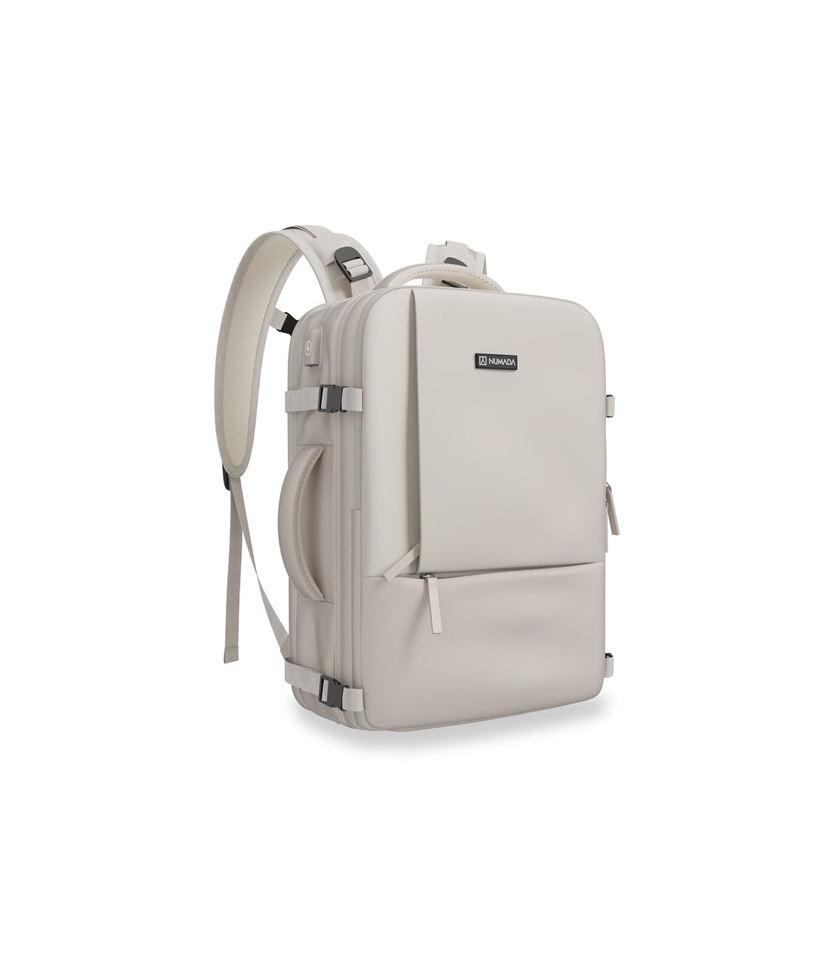 Color negro. Impermeable. Múltiples bolsillos. Puerto cargador USB. Apta compañías aeréas.