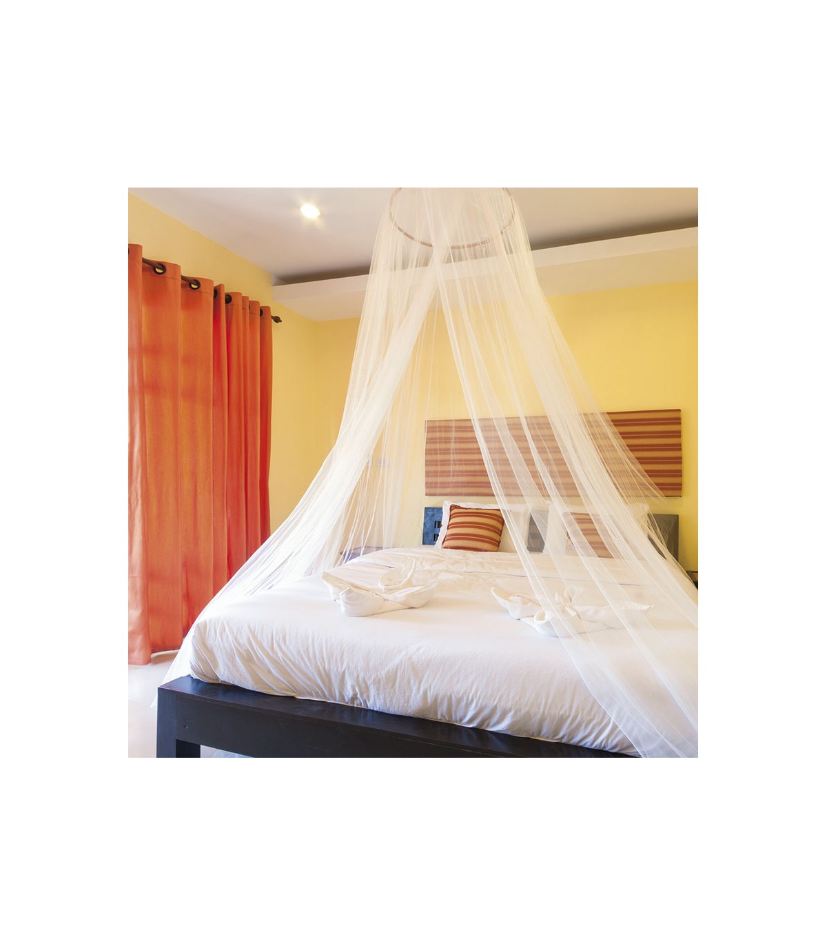 Poliéster. Aro rígido con gancho colgador al techo. Color blanco.