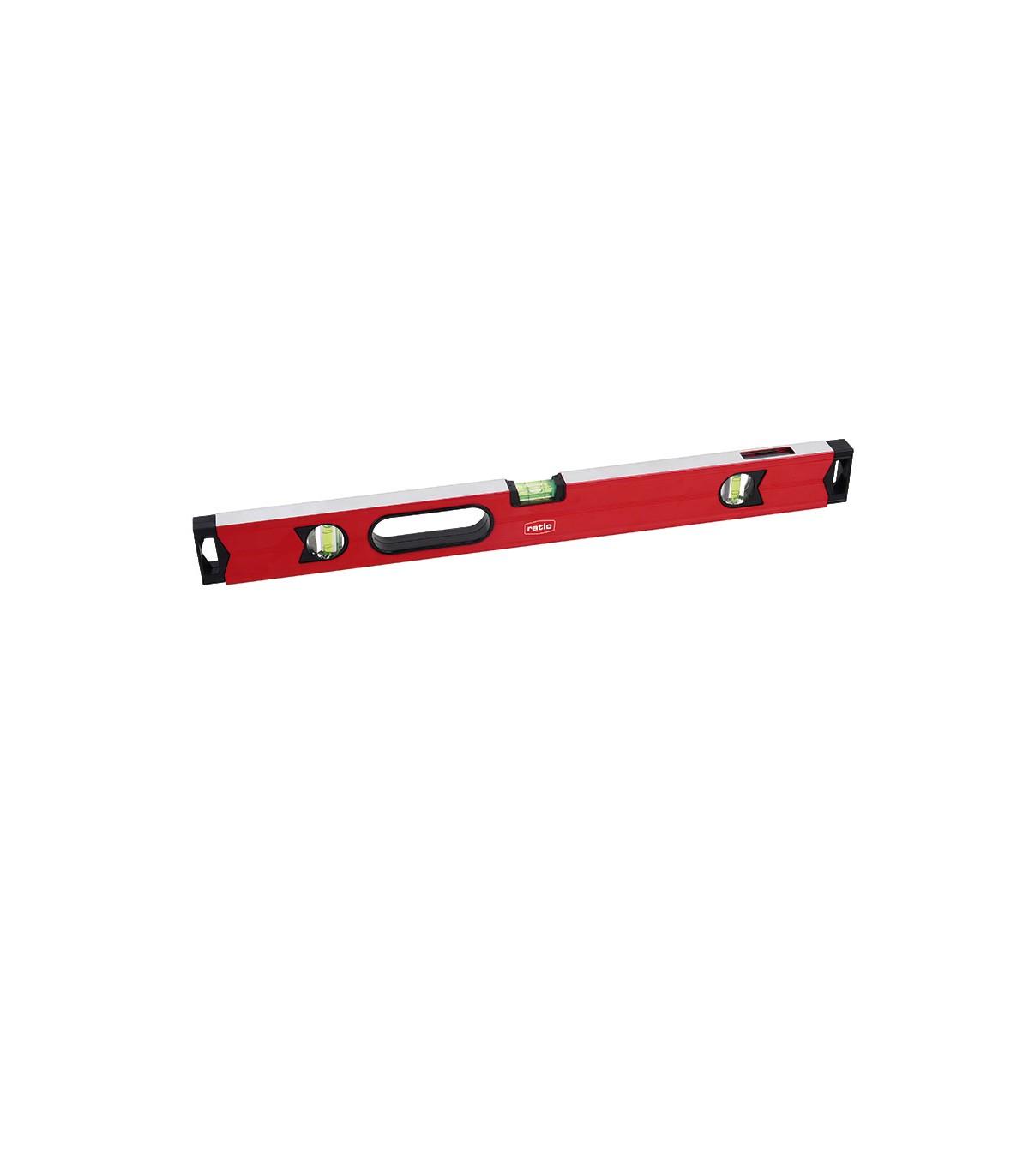 Bases rectificadas (arriba y abajo). 3 burbujas acriÍlicas antihoc (180º - 90º -90º). Con visor superior TopView para vista vertical. Precisión 0.50 mm/m. (0.0285º). Extremos reforzados.