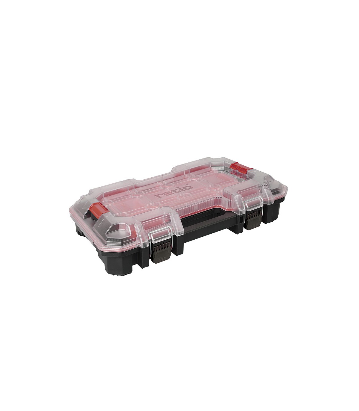 Organizador superior de carga para el carro modular profesional 7710 de enclavamiento automático, con 11 cubiletes removibles. Tapa transparente impermeable IP65. Cierres metálicos.
