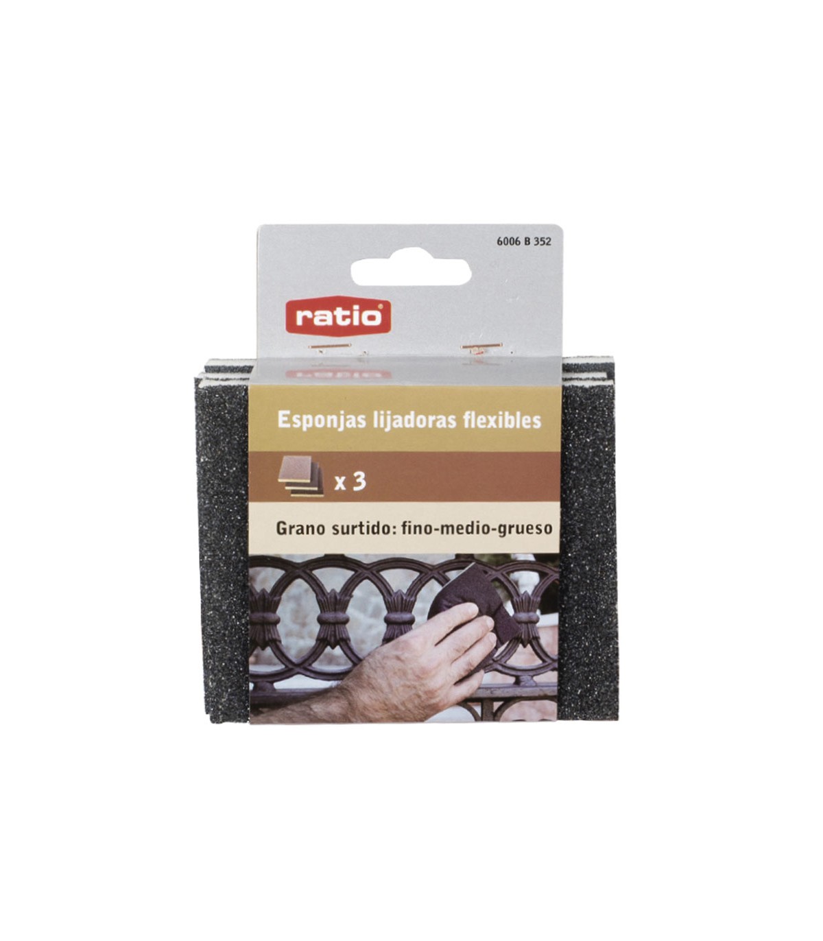 Juego 3 almohadillas con abrasivo en las dos caras. Gran flexibilidad. Ideal para trabajos difíciles.