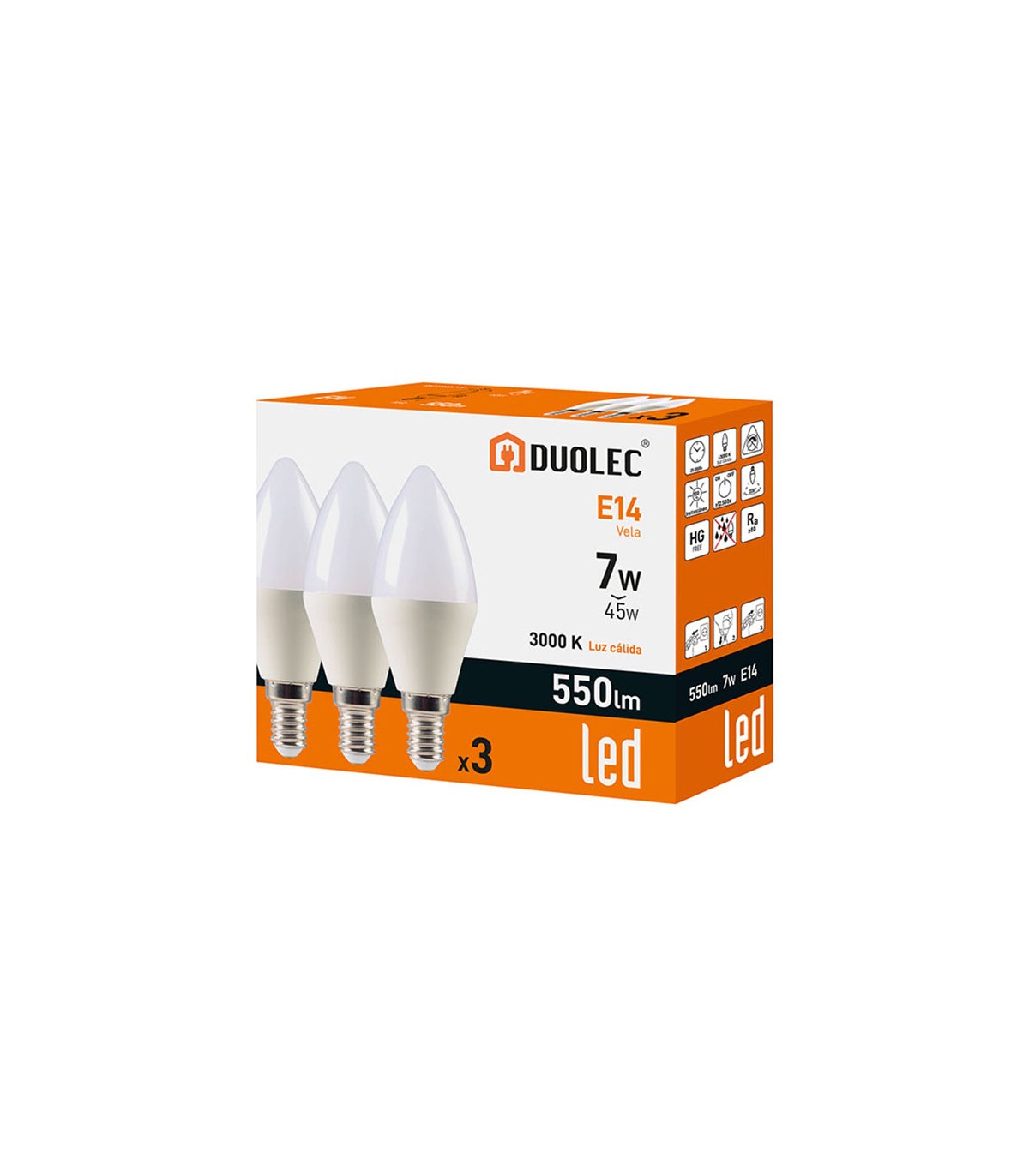Rosca E14. Gran potencia lumínica. Encendido instantáneo. Vida útil 25.000 h.