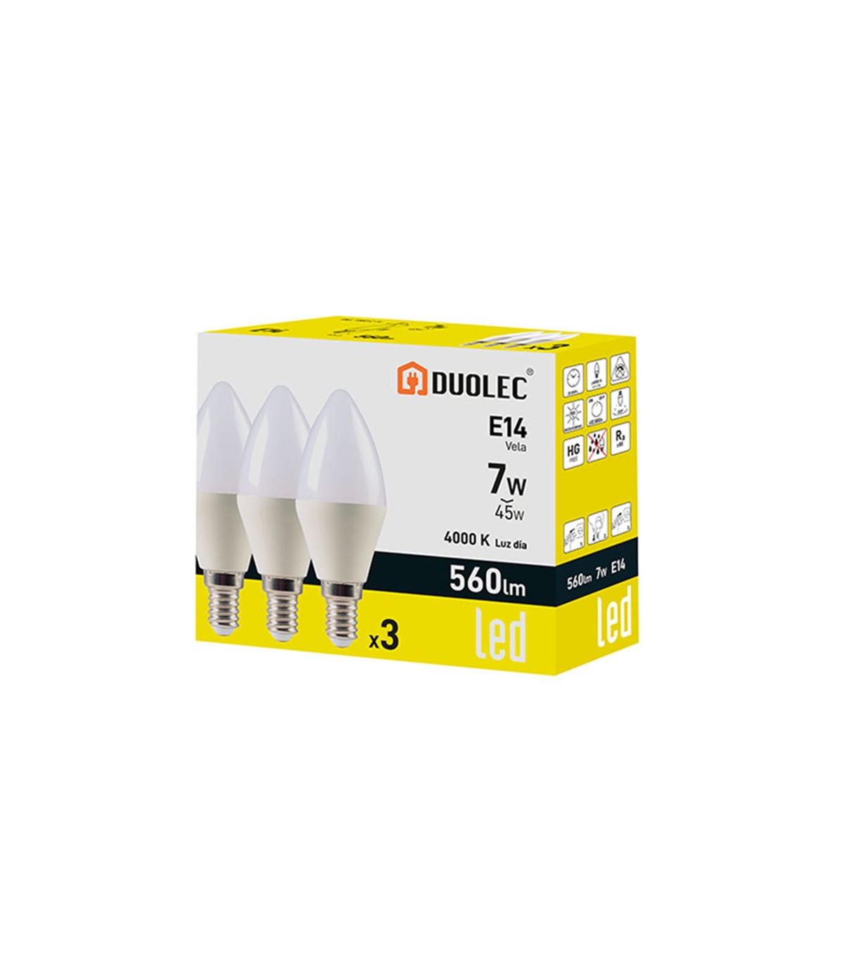 Rosca E14. Gran potencia lumínica. Encendido instantáneo. Vida útil 25.000 h.