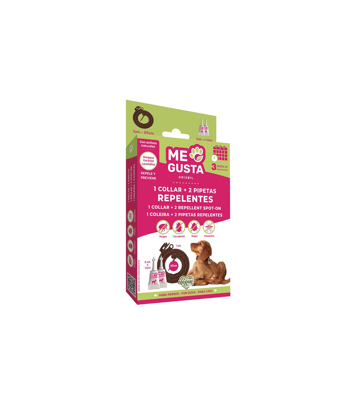 Pack collar repelente + 2 pipetas gato / perro ME GUSTA