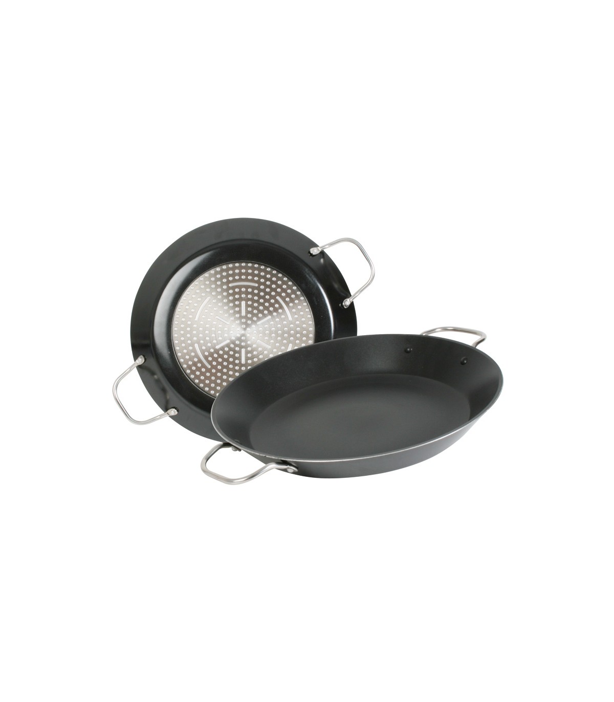 Plana. Aluminio, asas metálicas. Antiadherente dos capas. Para todo tipo de cocinas, especialmente inducción.