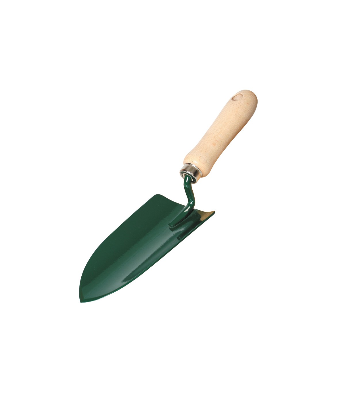 Acero pintado epoxi. Mango madera barnizada fijado con virola metálica.